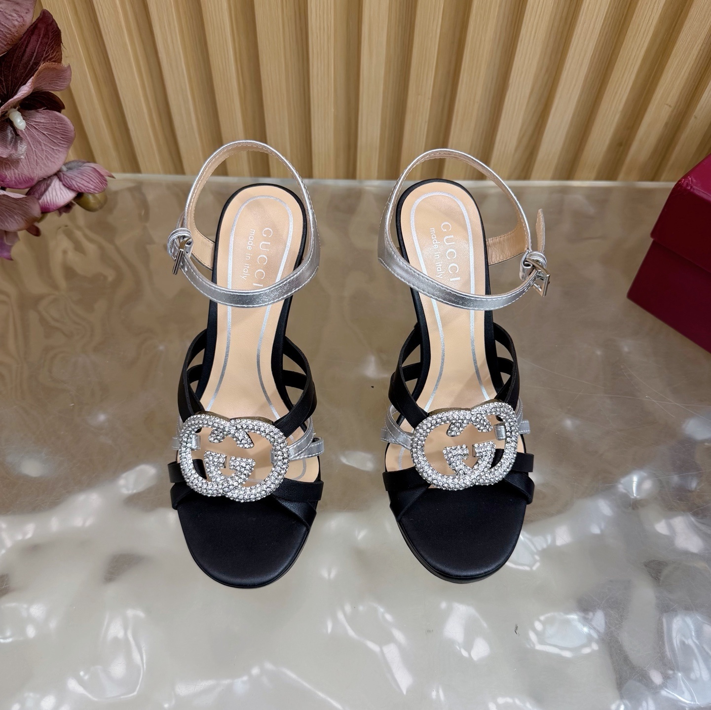 The combination of black leather, silver accents, and rhinestone detailing creates a harmonious blend of classic and contemporary design. These sandals are not only visually stunning but also offer exceptional comfort and support.