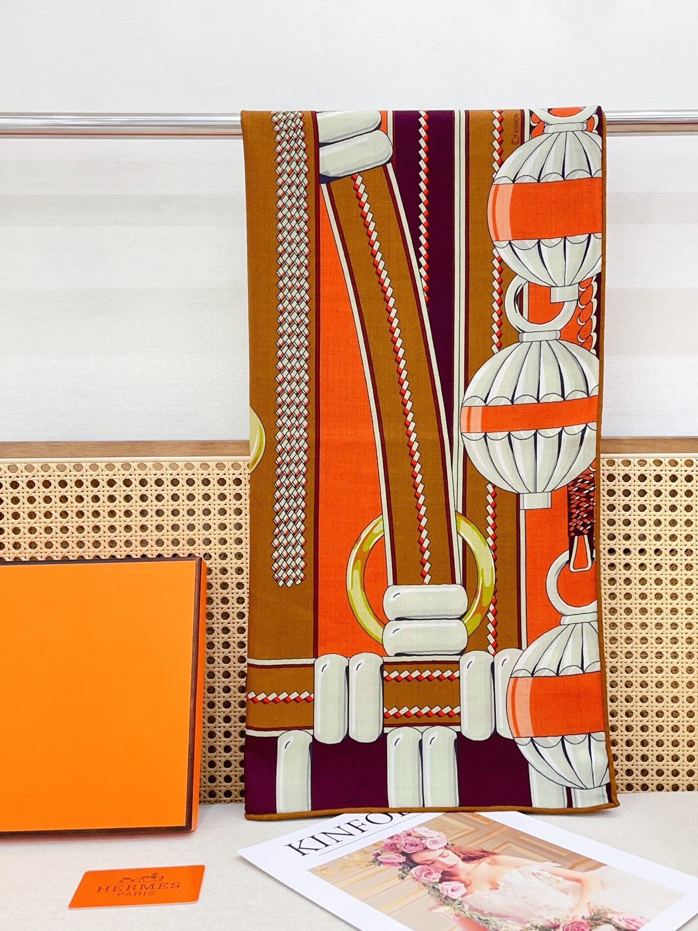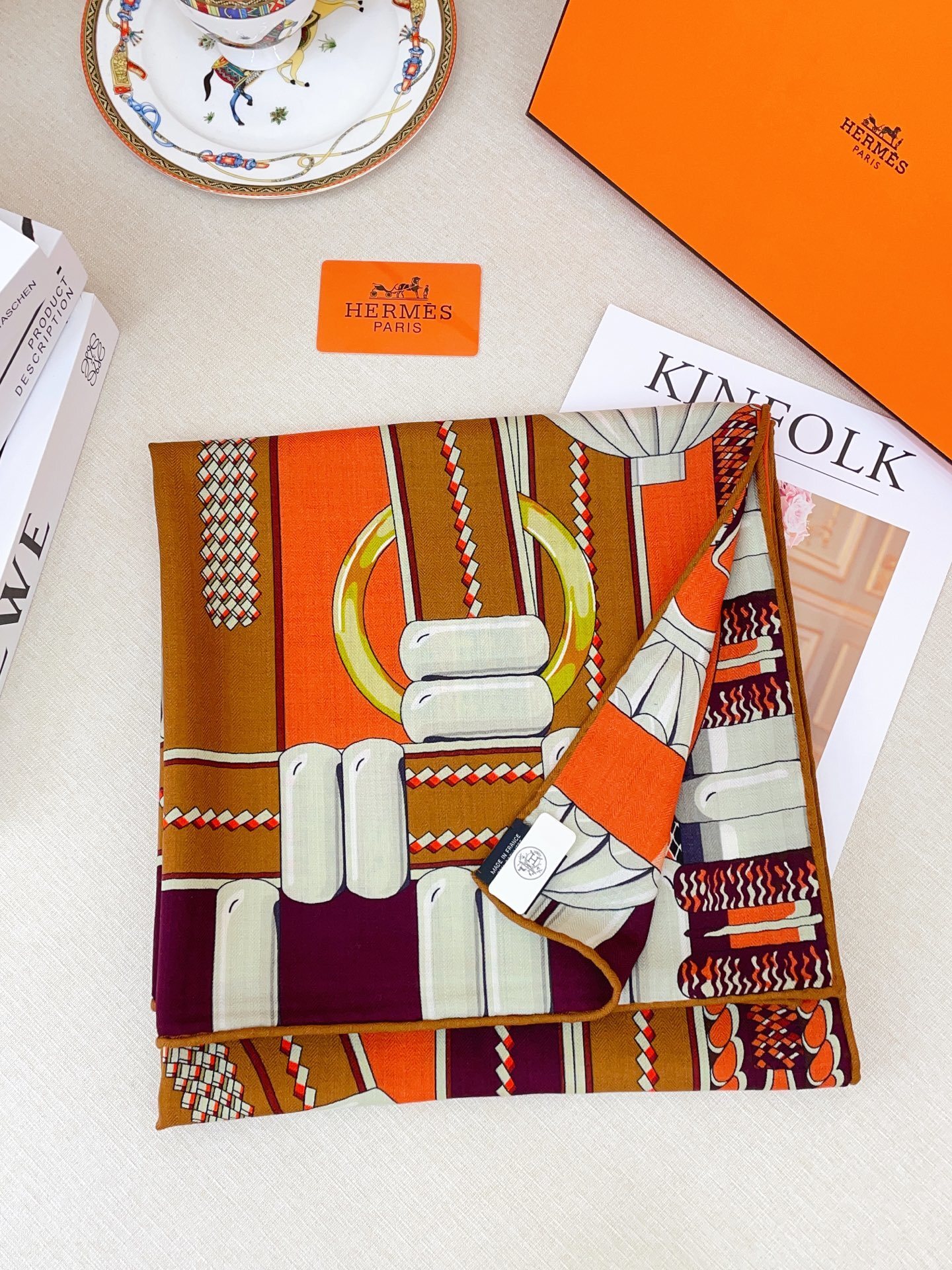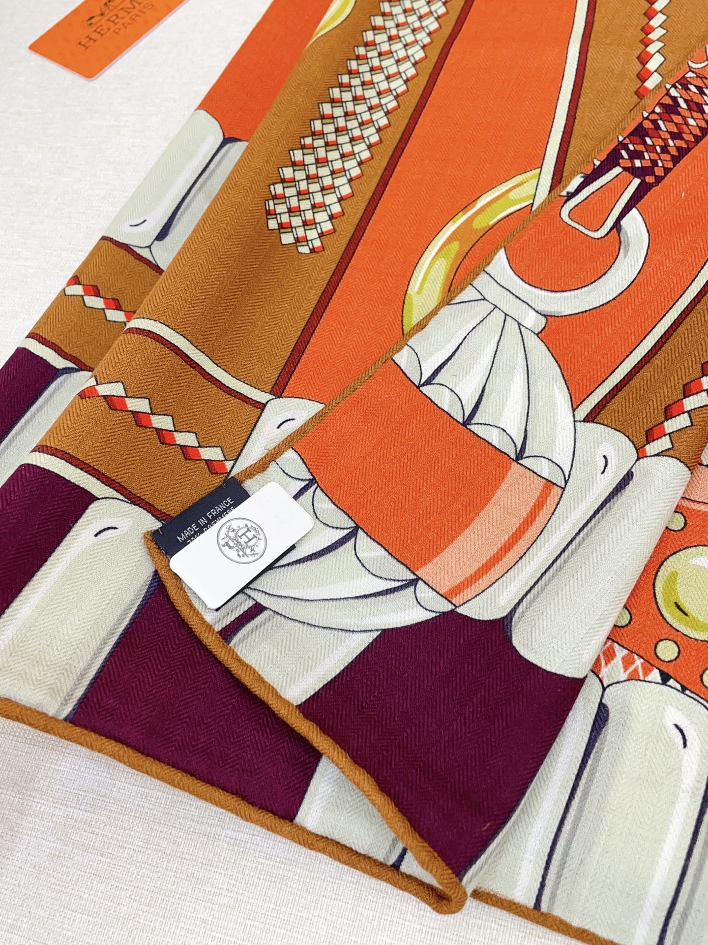 Hermès Camel Gray Wool Scarf Logo – Designer Elegance
