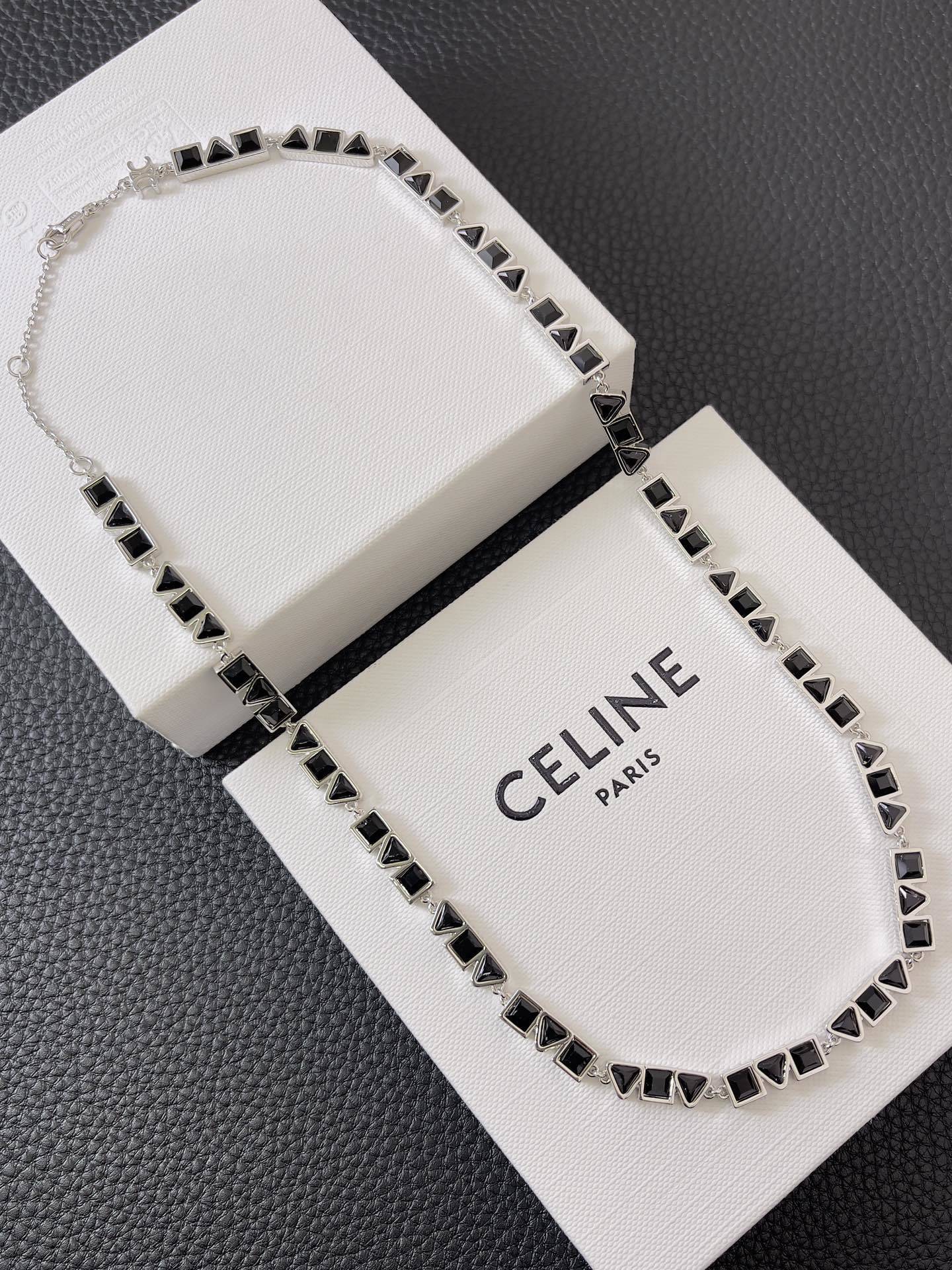 Q: What makes the Celine Silver Black Triangle Necklace unique?