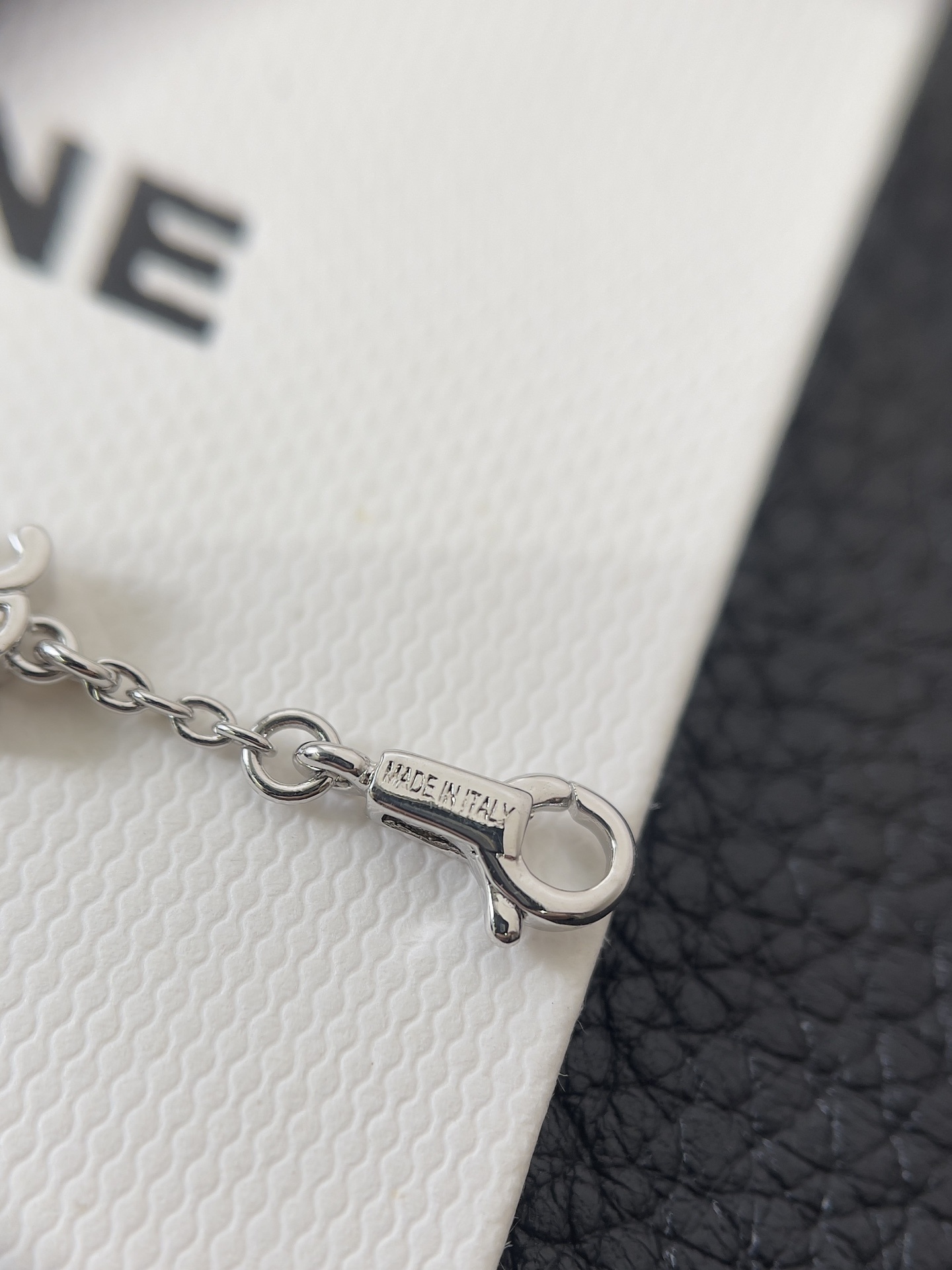 To clean the necklace, gently wipe it with a soft, lint-free cloth. For more stubborn dirt or grime, you can use a mild soap and water solution. Be sure to rinse the necklace thoroughly and dry it completely before storing it. Avoid using abrasive cleaners or scrubbing vigorously, as this can damage the delicate materials. With proper care, your Celine Silver Black Triangle Necklace will continue to shine and sparkle for years to come.