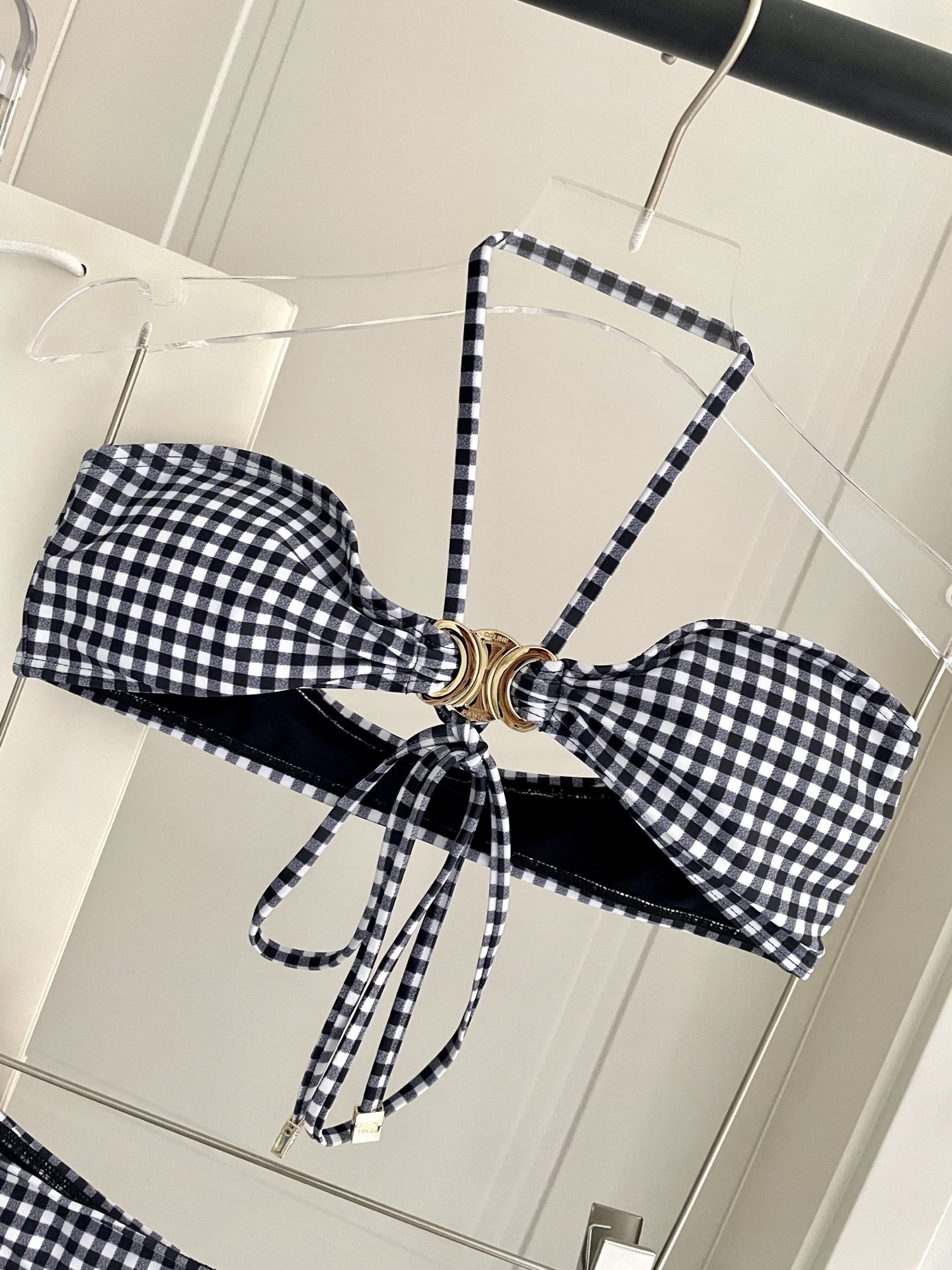 - Chic Gingham Print: The timeless black and white gingham pattern adds a touch of sophistication and playfulness to your swimwear collection.