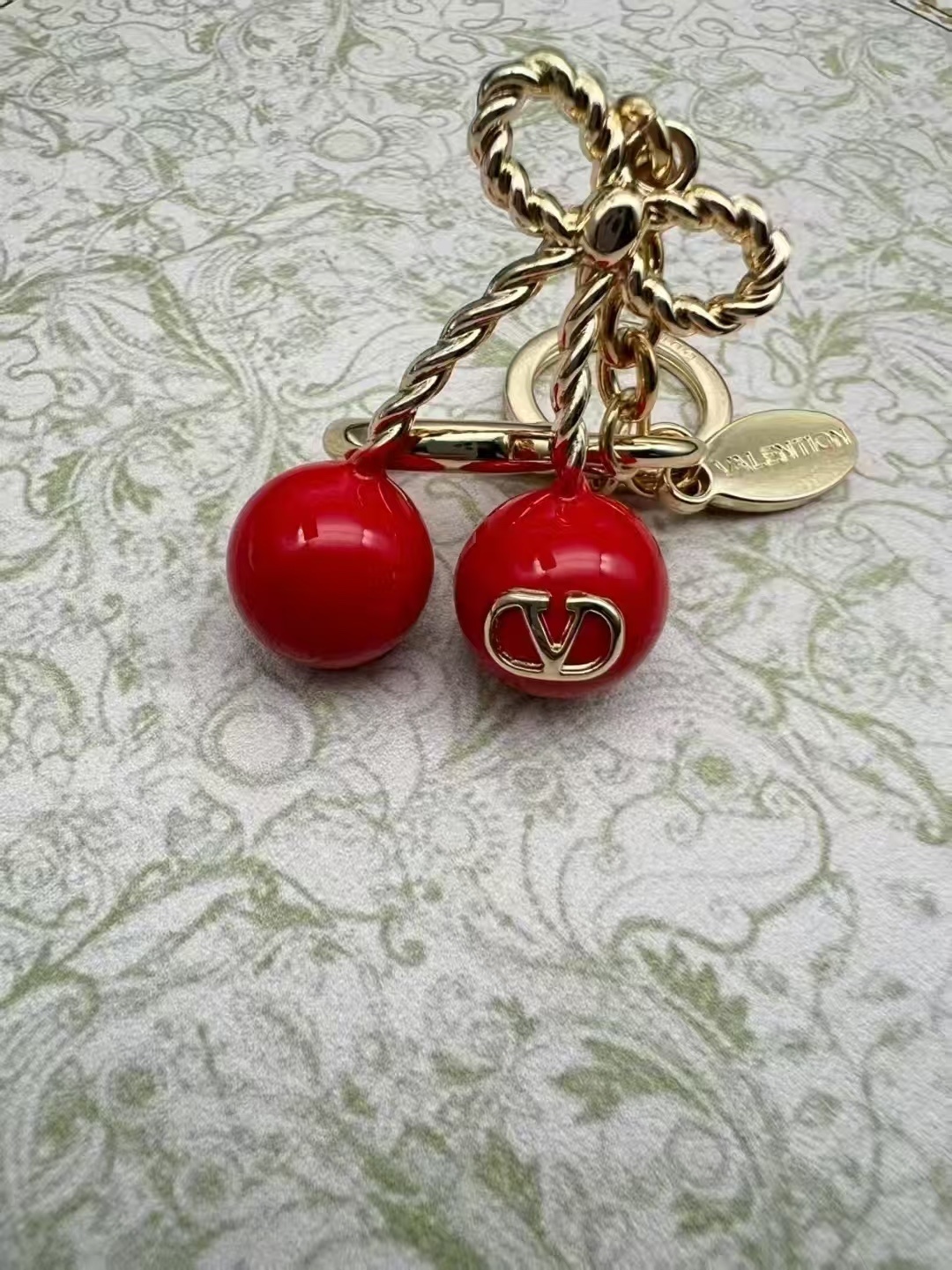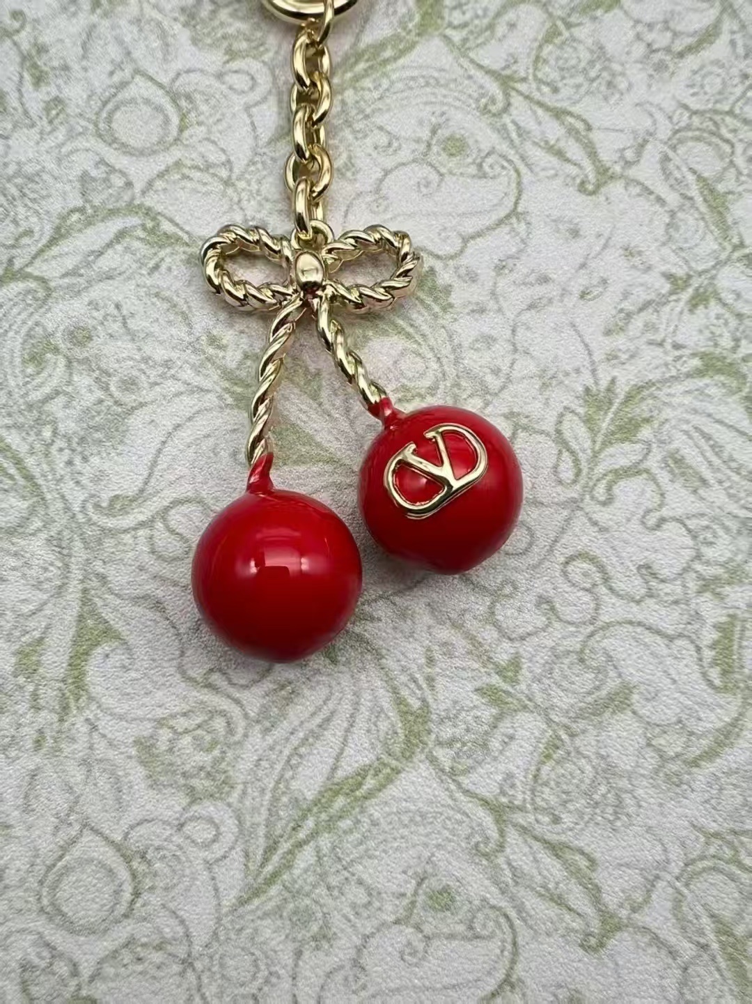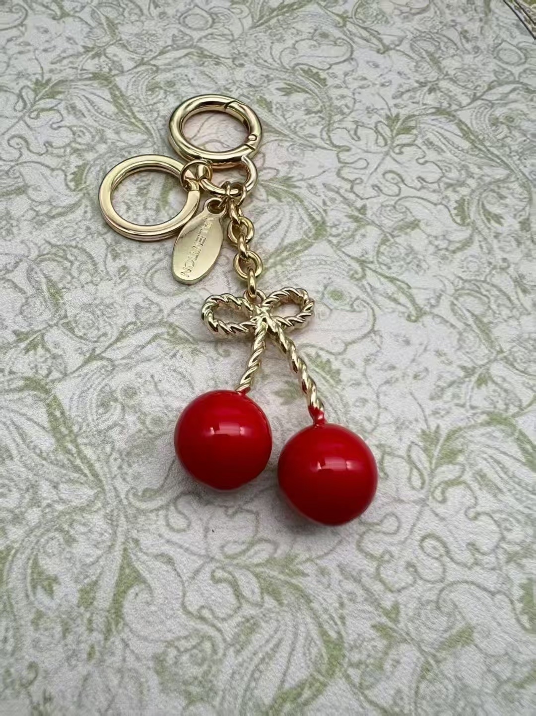 - gold tone Valentino Red Cherry Keychain Features