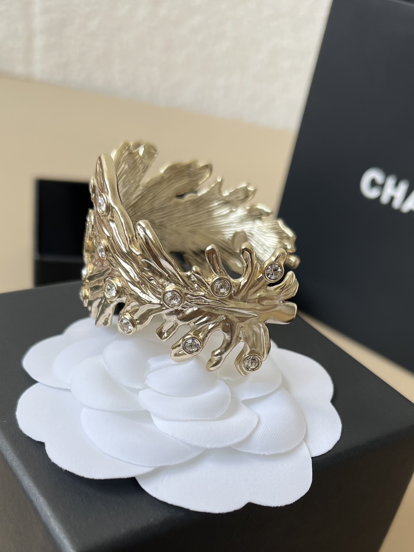 - Design: Intricate leaf design with sparkling accents