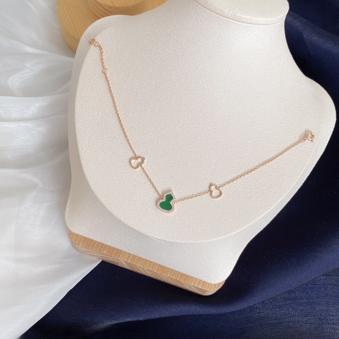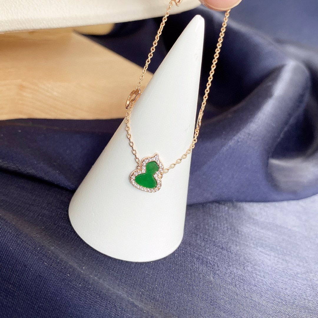 - Rose Gold Finish: The warm rose gold finish complements the vibrant green gourd charm, adding a touch of sophistication to any outfit.