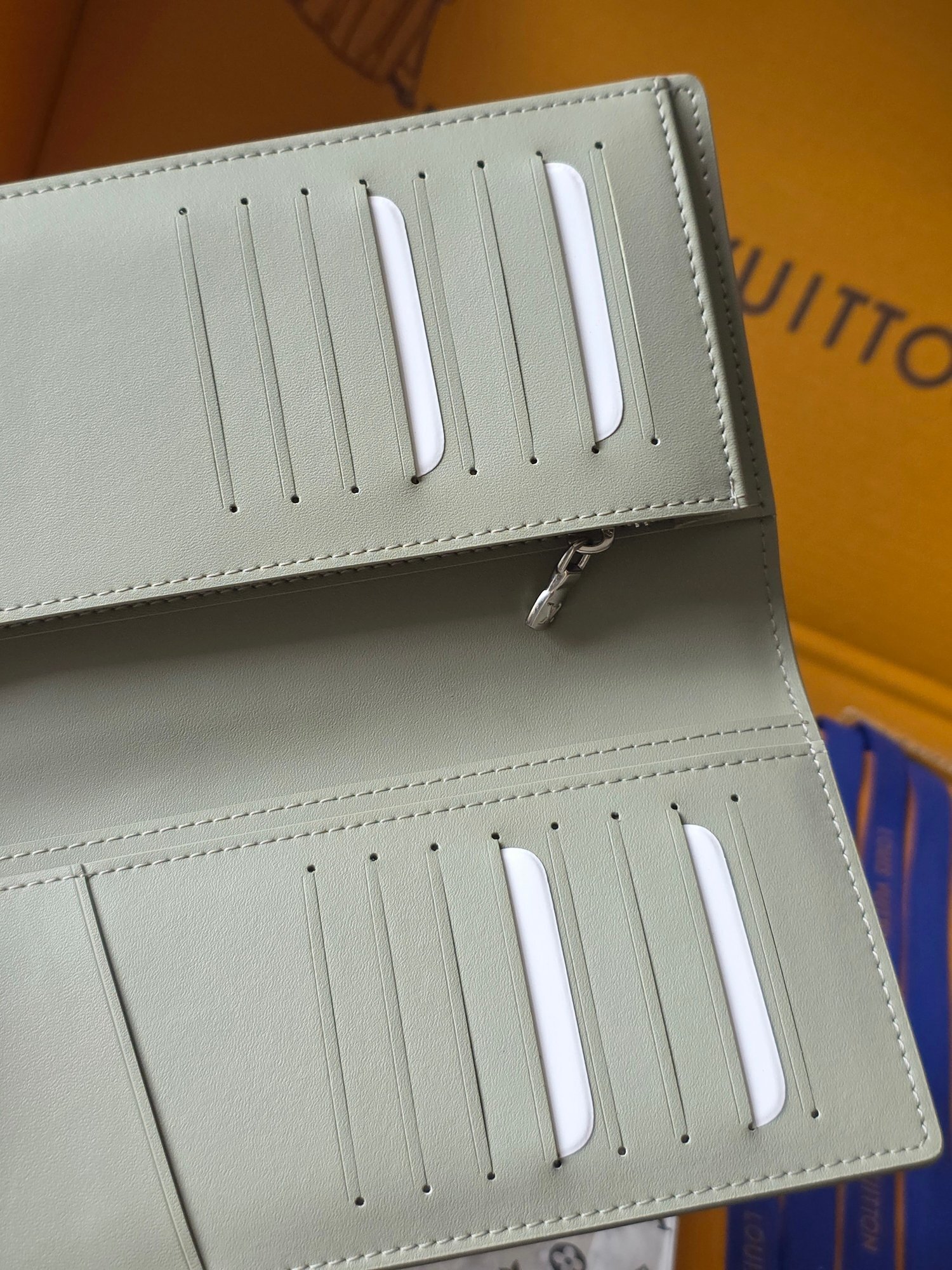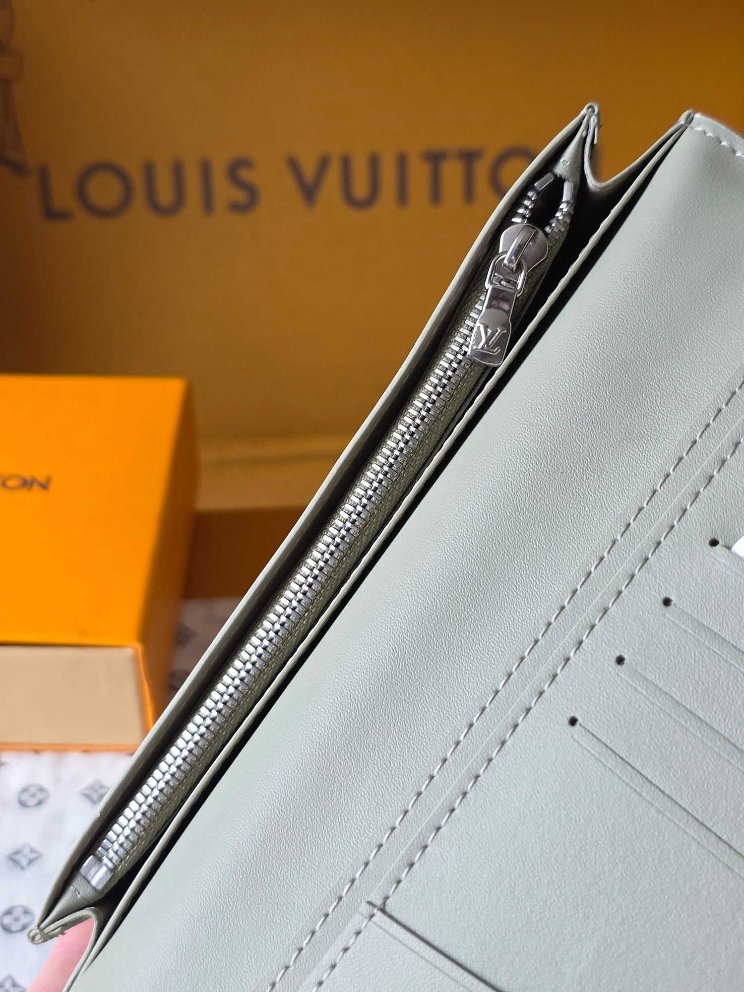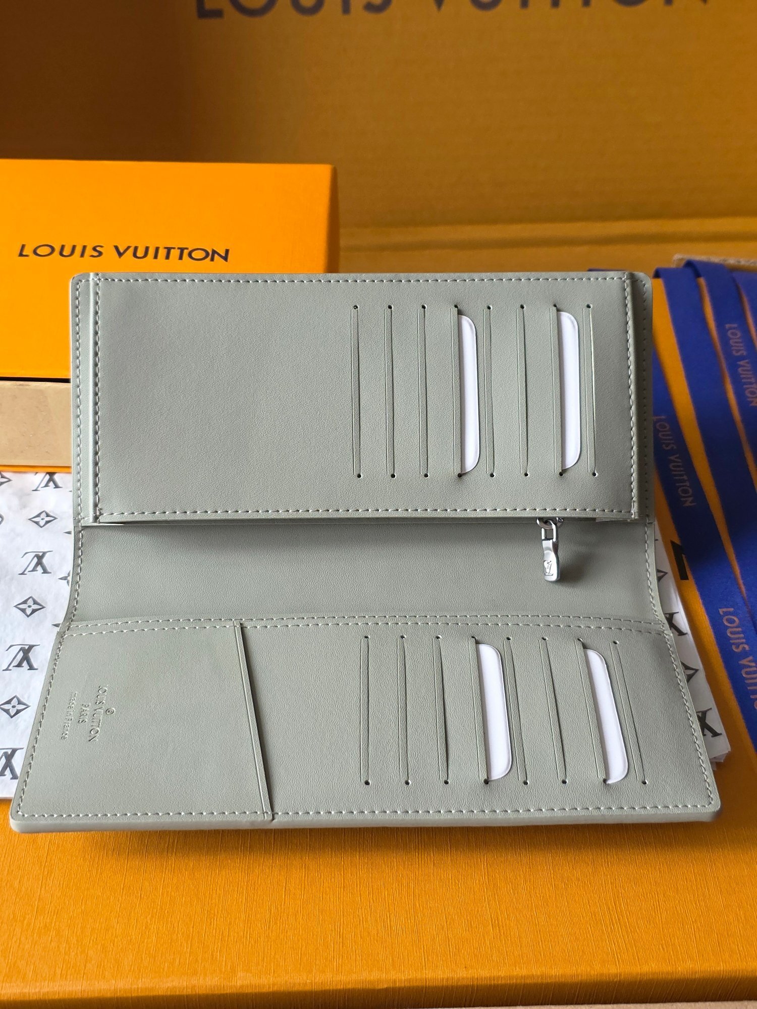 The stitching is meticulously done, showcasing the attention to detail that Louis Vuitton is known for. The smooth zipper glides effortlessly, providing easy access to your belongings. Every aspect of this wallet has been carefully considered to provide the ultimate in style and functionality.