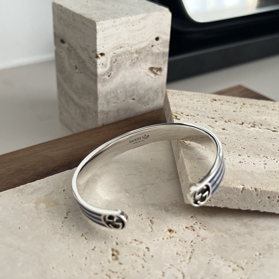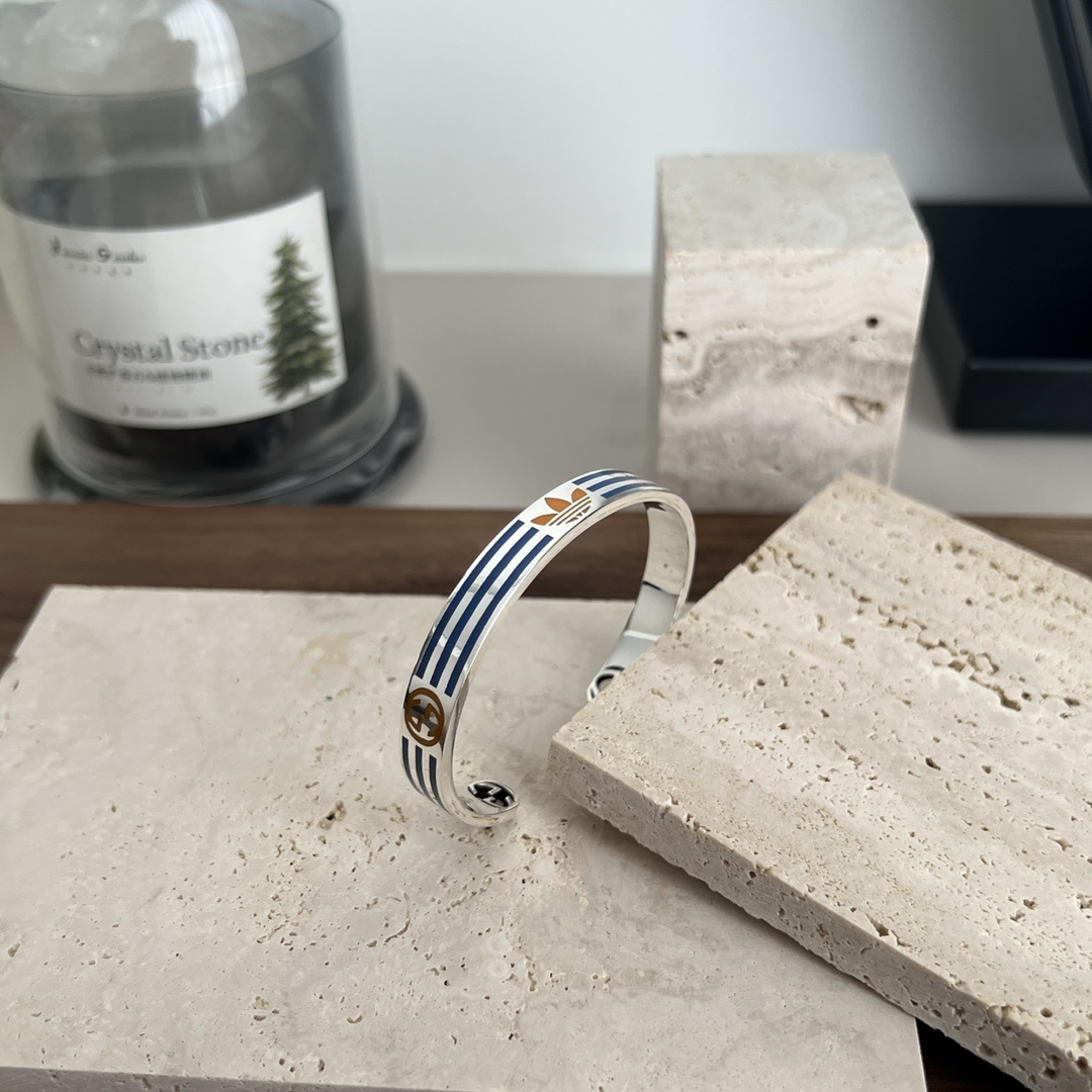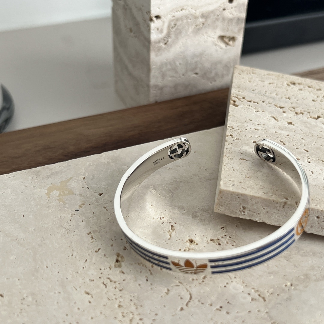 - Design: Open cuff with Gucci and Adidas logo detailing