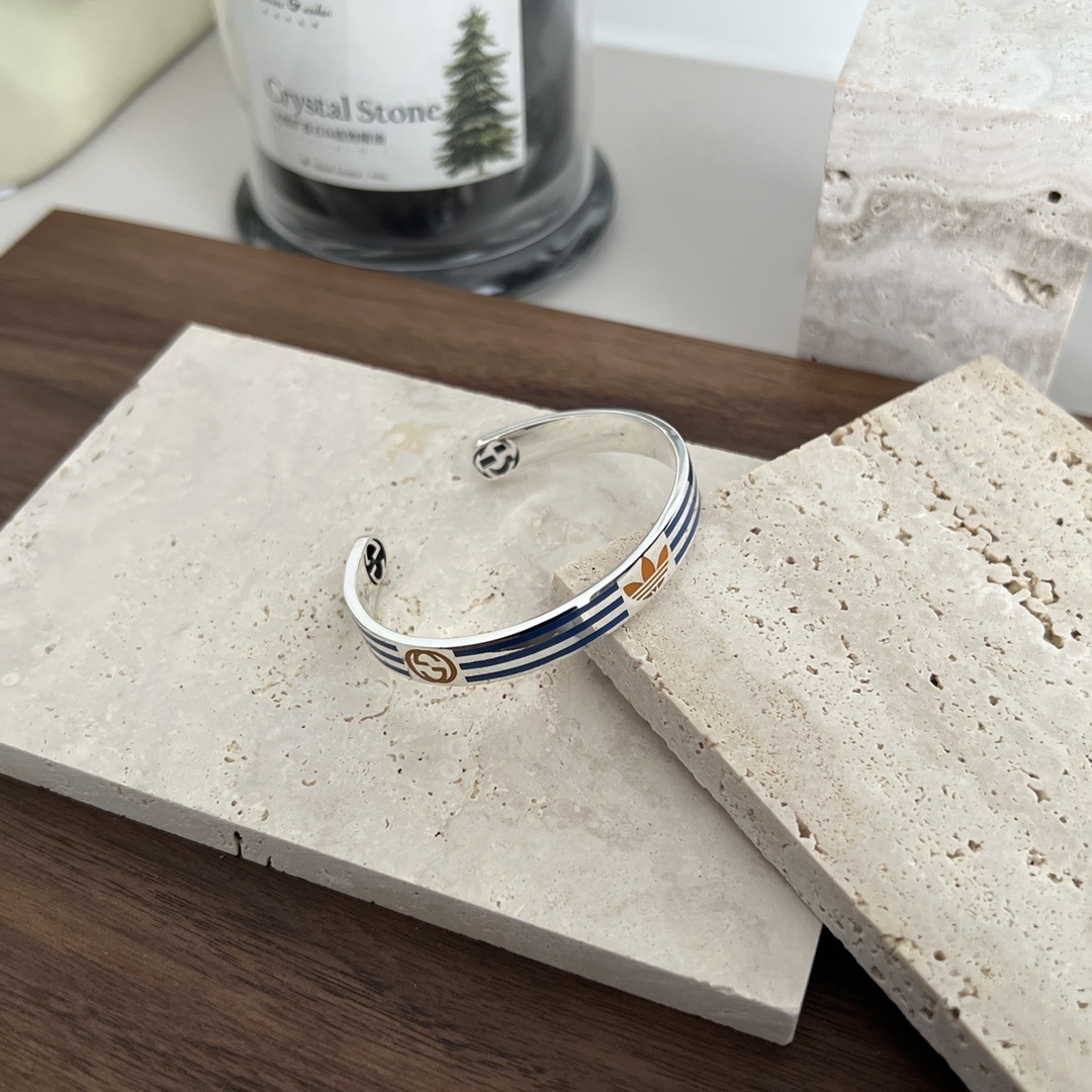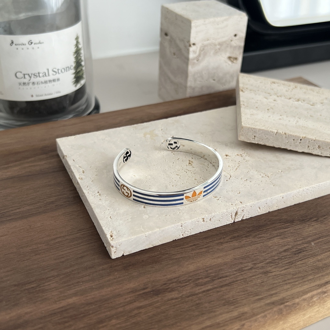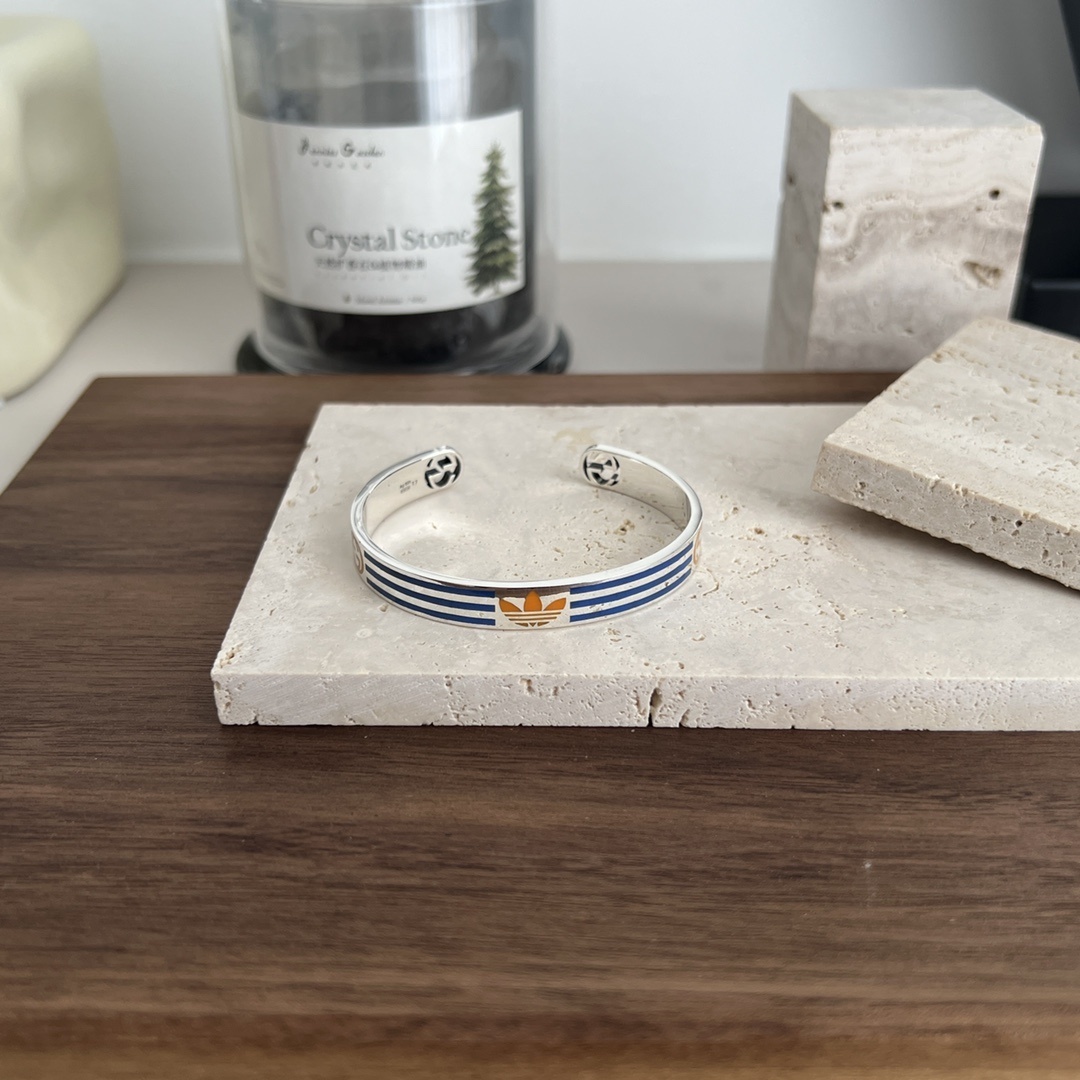 - Design: Open cuff with Gucci and Adidas logo detailing