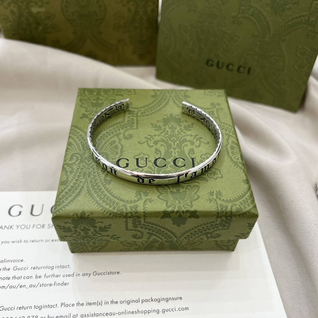 The Gucci "Blind For Love" bracelet is designed to enhance your personal style and elevate any outfit. Wear it solo for a minimalist statement or stack it with other bracelets for a bolder look. Its versatility makes it a perfect addition to any jewelry collection.