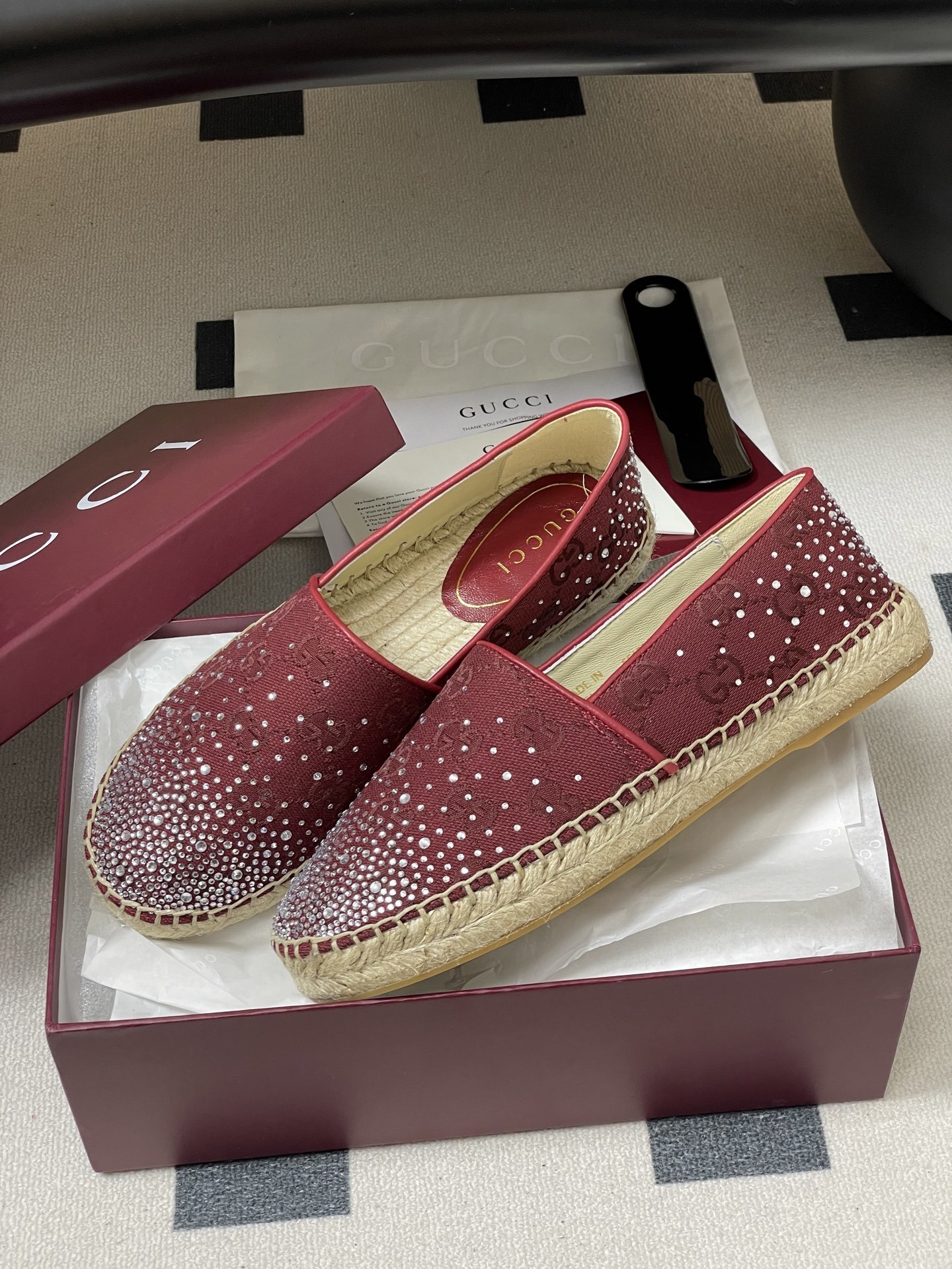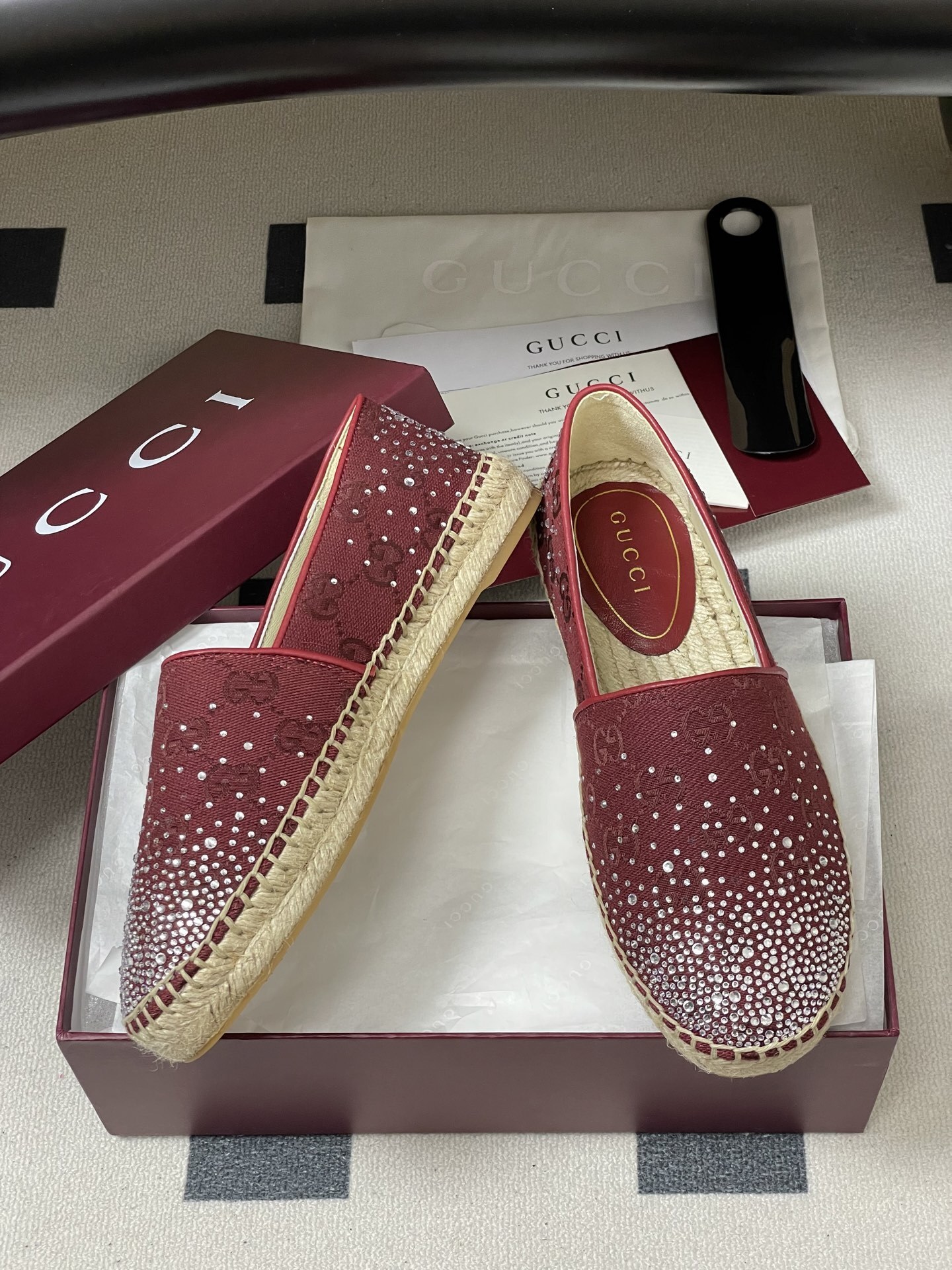 Gucci Burgundy Crystal Espadrilles - Gucci Burgundy Espadrilles