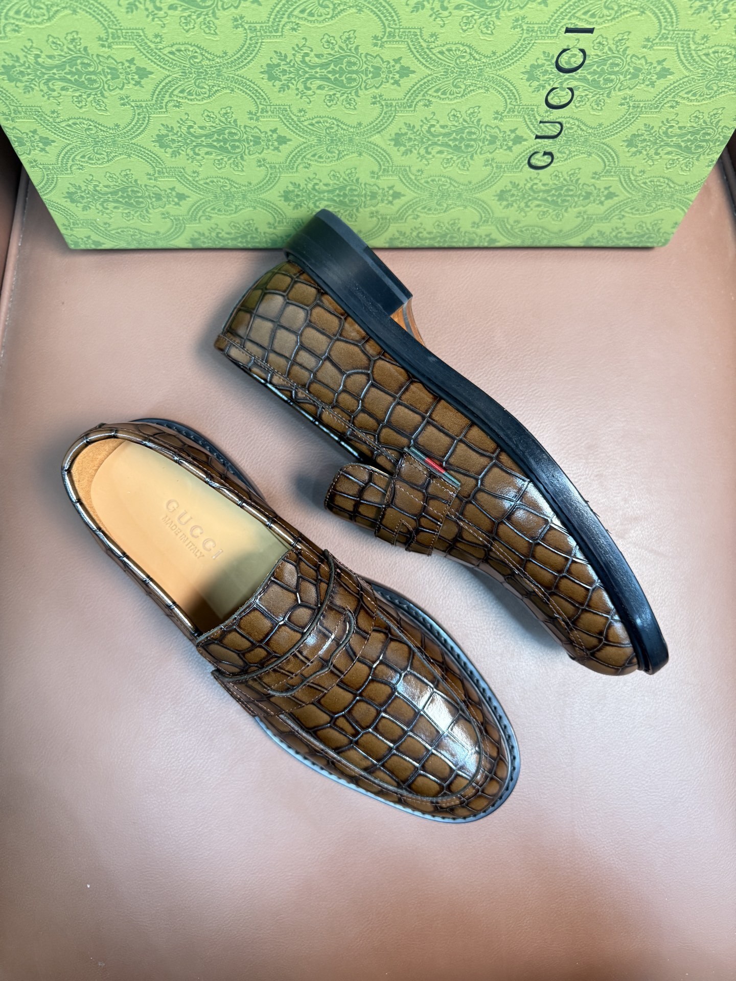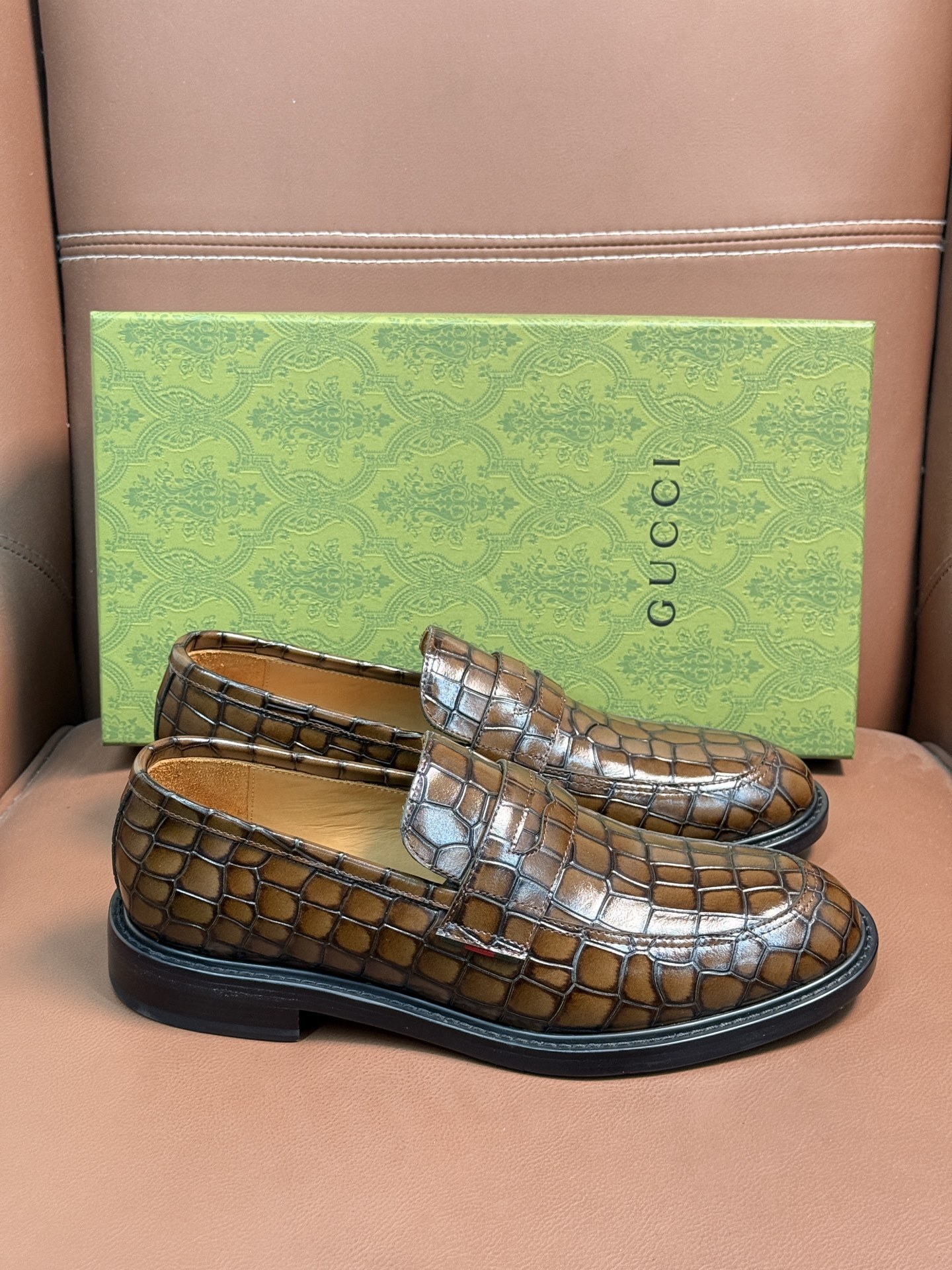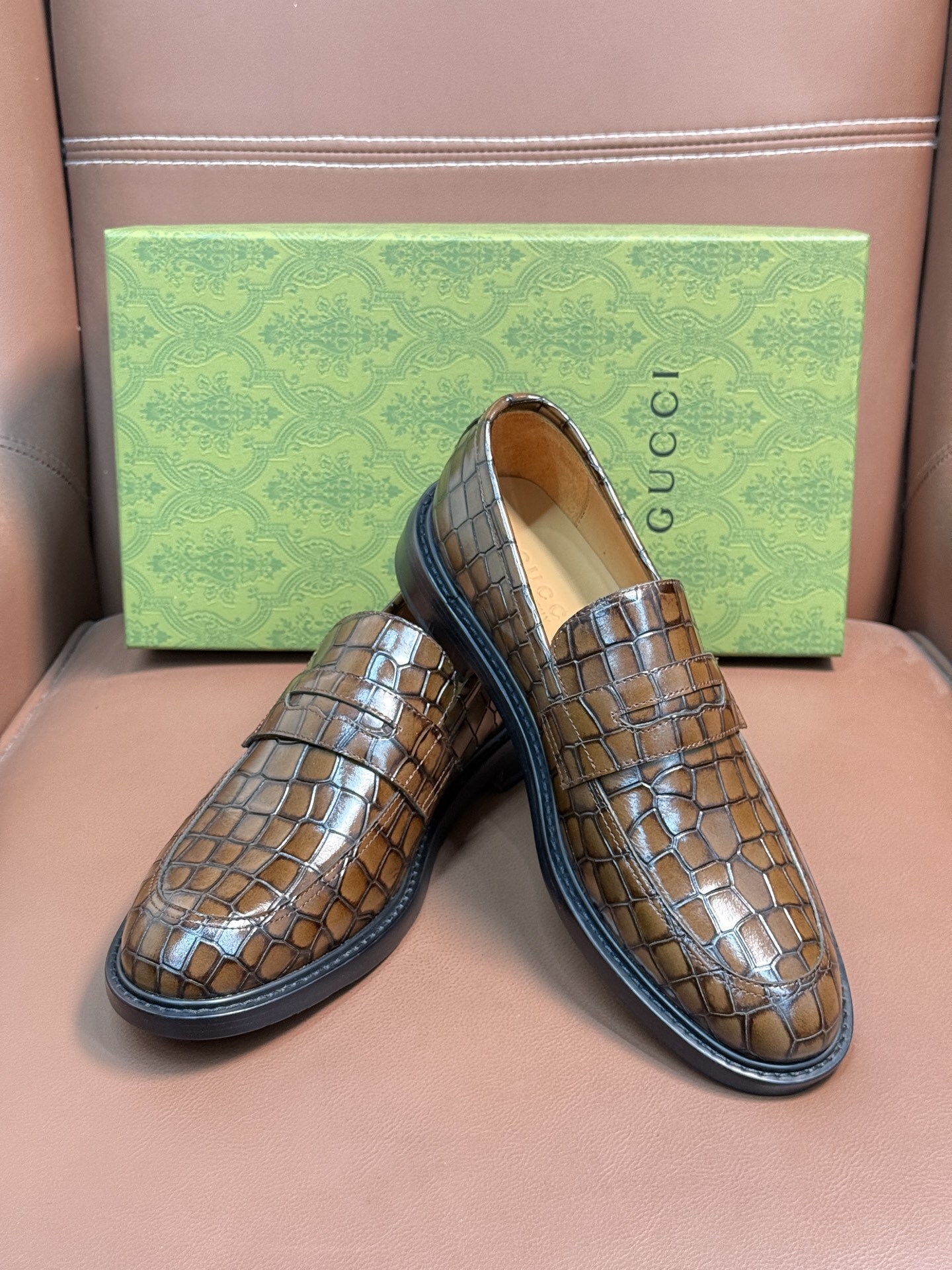 Introducing the Gucci Crocodile Embossed Loafers