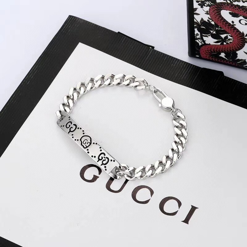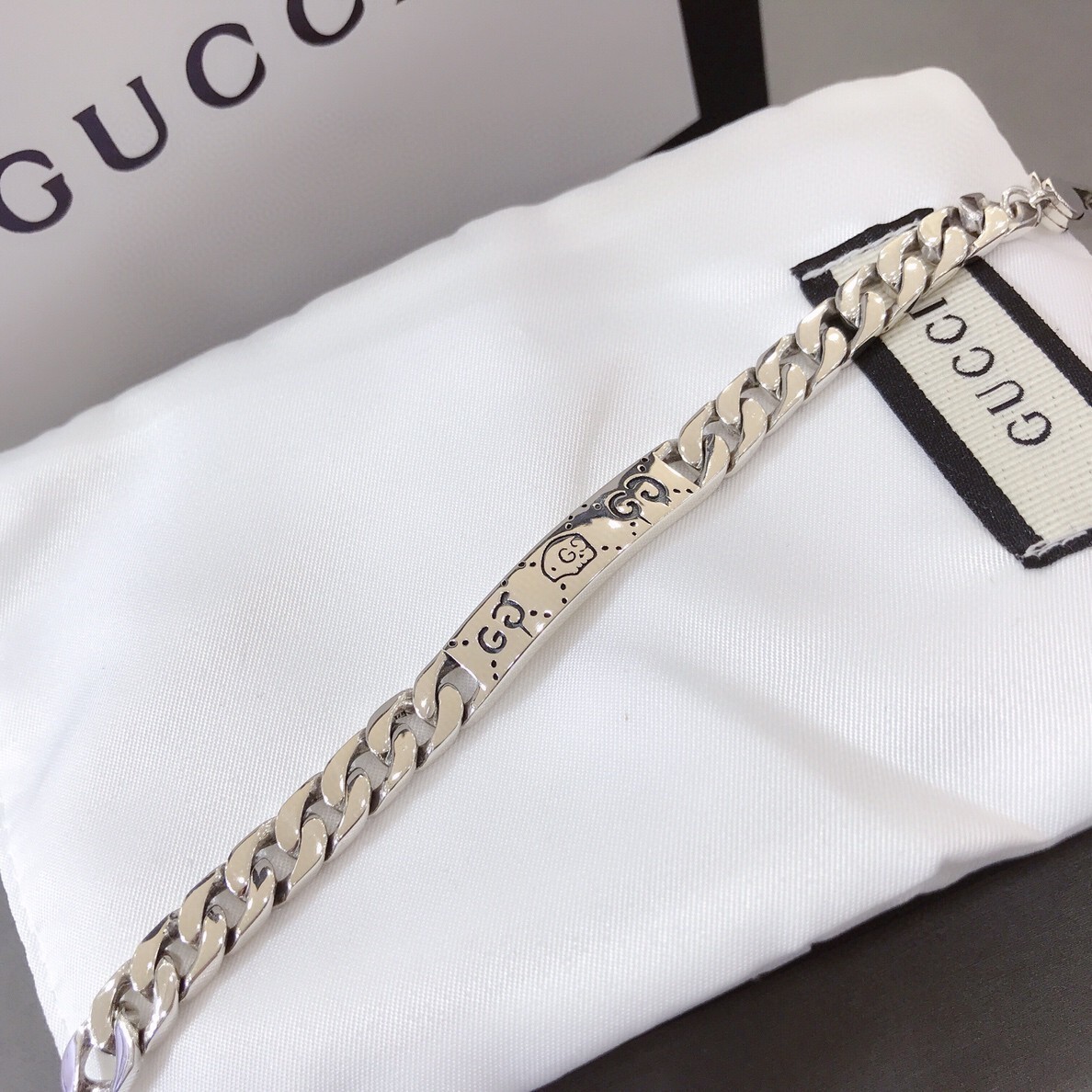 Crafted from high-quality sterling silver, this bracelet boasts exceptional durability and a radiant shine that will last for years to come. The intricate chain design showcases meticulous attention to detail, while the secure clasp ensures a comfortable and worry-free wear. The Gucci Ghost engravings are flawlessly executed, adding a touch of whimsy and exclusivity to this already stunning piece.