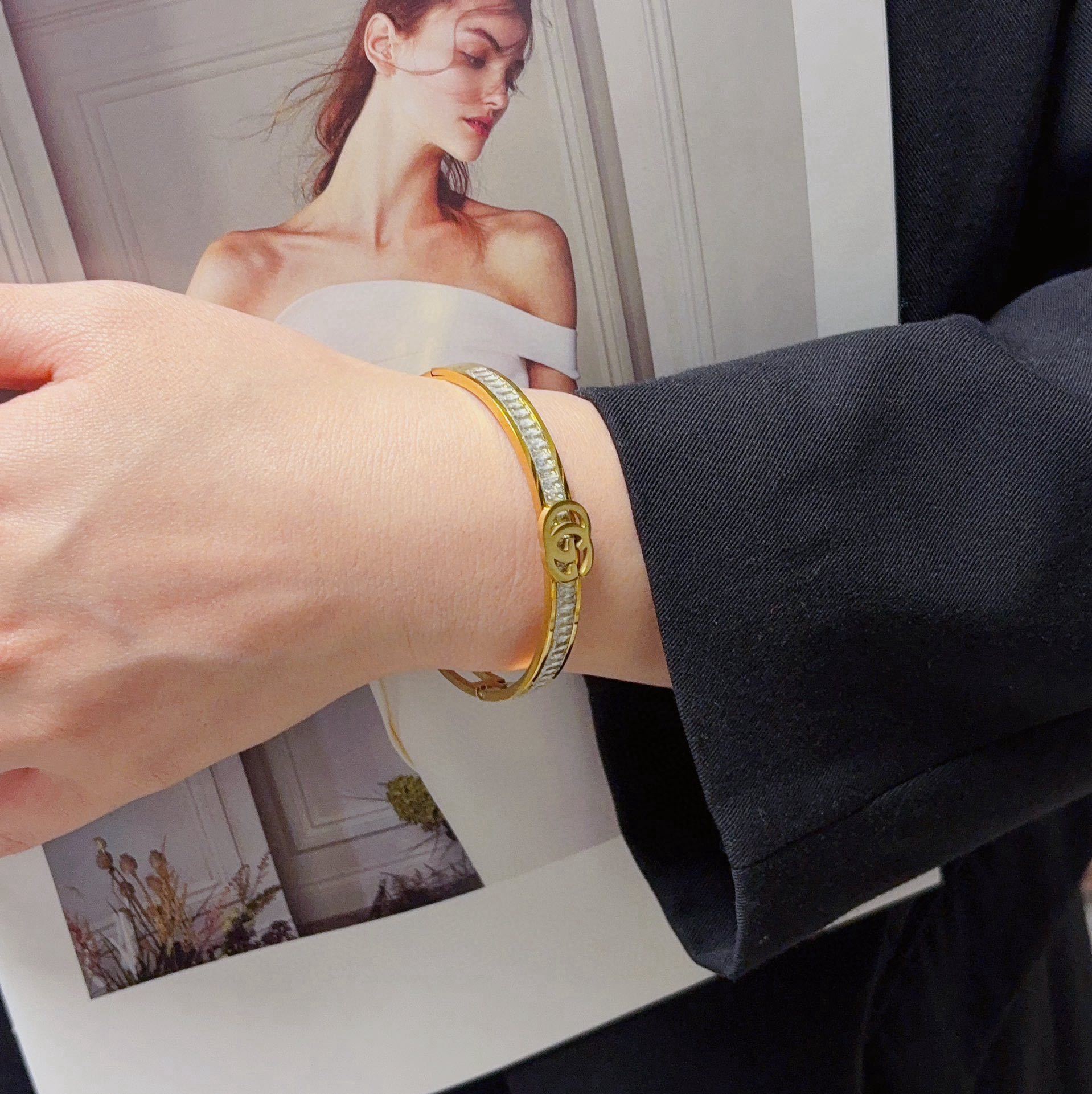- Highlighting the Gucci Gold Bangle with Baguette Diamonds