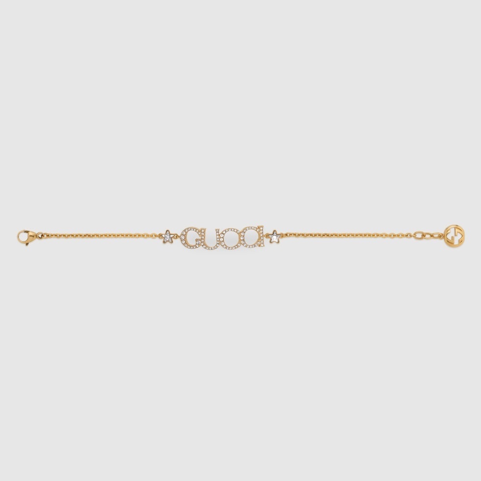 - Introducing the Gucci Gold Chain Crystal Logo Bracelet