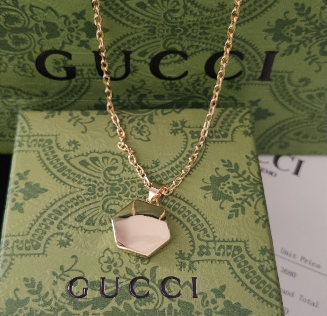 This necklace is more than just an accessory; it's a symbol of style, quality, and timeless elegance. The gold hexagon pendant adds a modern twist to the classic Gucci aesthetic, making it a versatile piece that can be paired with various styles. From casual to formal, the Gucci Gold Hexagon Pendant Necklace seamlessly complements any ensemble, adding a touch of sophistication and luxury.