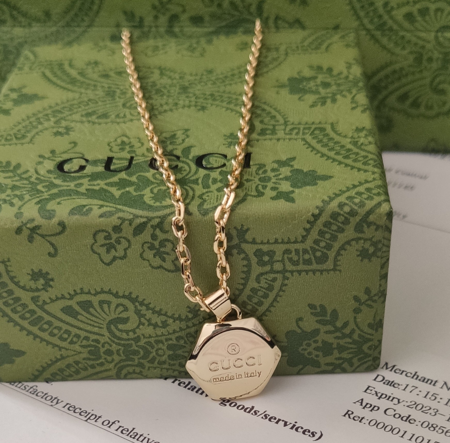 Regularly inspect the necklace for any signs of damage, such as loose clasps or weakened links. If you notice any issues, it is best to take the necklace to a professional jeweler for repair. Avoid wearing the necklace during strenuous activities or when swimming, as these can increase the risk of damage. By following these simple care instructions, you can ensure that your Gucci Gold Hexagon Pendant Necklace remains a cherished piece for years to come.