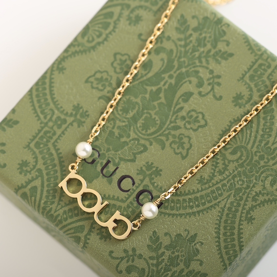The Gucci Gold Letter Pearl Necklace is a timeless piece that combines luxury, style, and quality. It's a valuable addition to any jewelry collection and a perfect gift for someone special. our store collection. For more information about pearls, visit product background on Wikipedia.