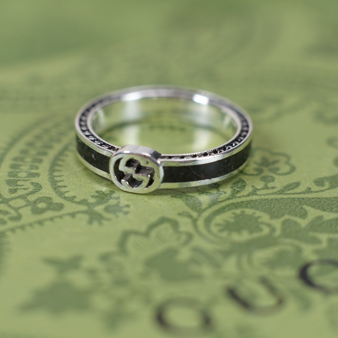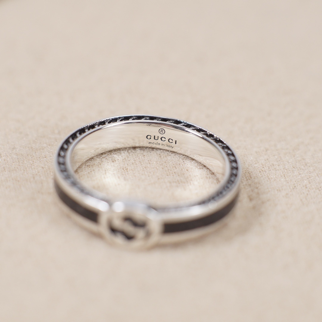 interlocking Gucci Silver Black Enamel Ring – Gucci Silver & Black