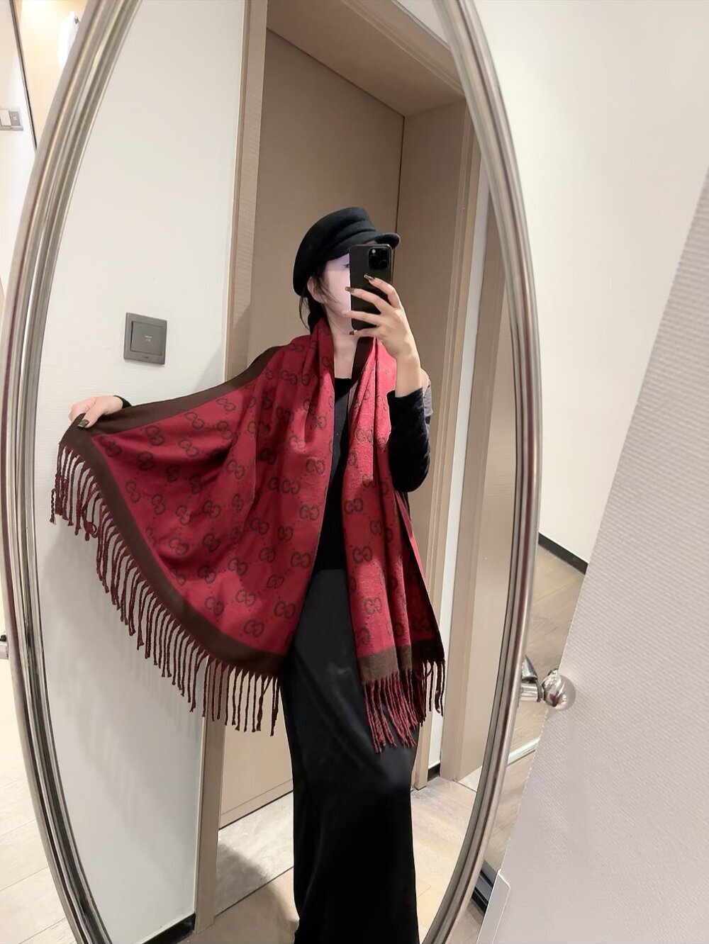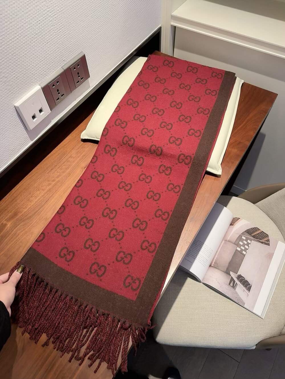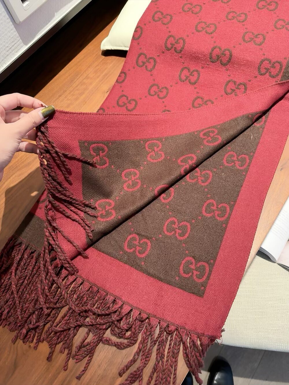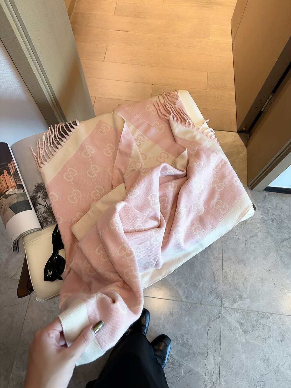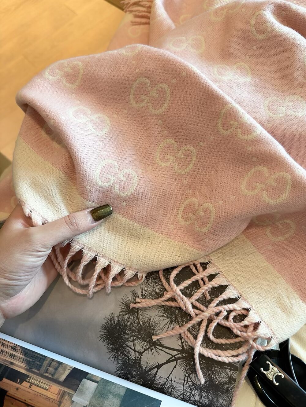 Gucci Pink Wool Scarf - Wrap yourself in luxury with the exquisite Gucci Pink Wool Blend Scarf. This stunning accessory seamlessly blends comfort, style, and iconic design, making it a must-have addition to your wardrobe. The delicate pink hue is perfectly complemented by the signature GG pattern, creating a sophisticated and timeless look. Crafted from a premium wool blend, this scarf offers exceptional warmth and softness, ensuring you stay cozy and chic all season long. The fringe detailing adds a touch of playful elegance, making it versatile enough to pair with both casual and formal outfits. Whether you're looking to elevate your everyday style or add a touch of luxury to a special occasion, the Gucci Pink Wool Blend Scarf is the perfect choice.