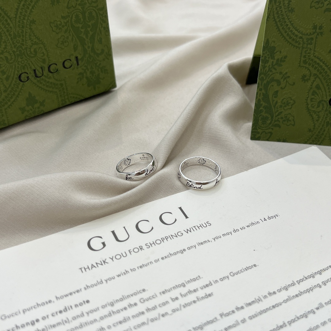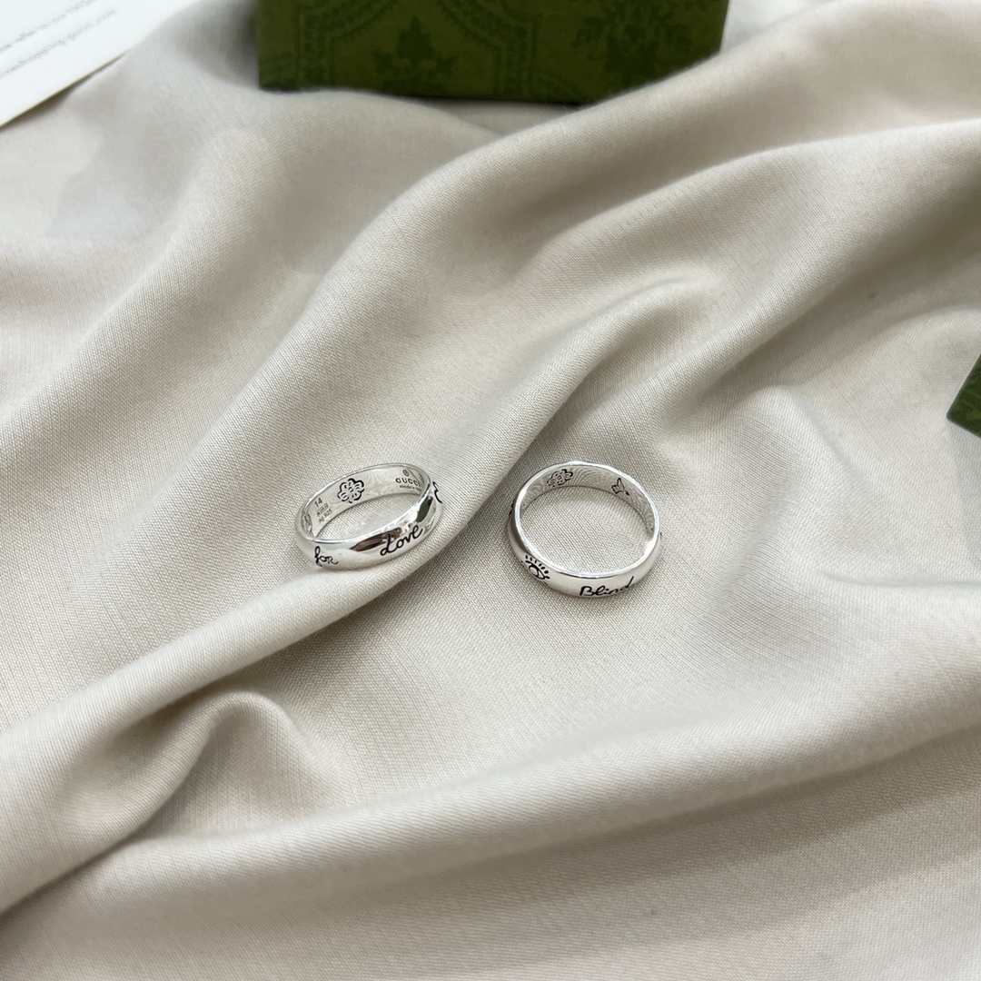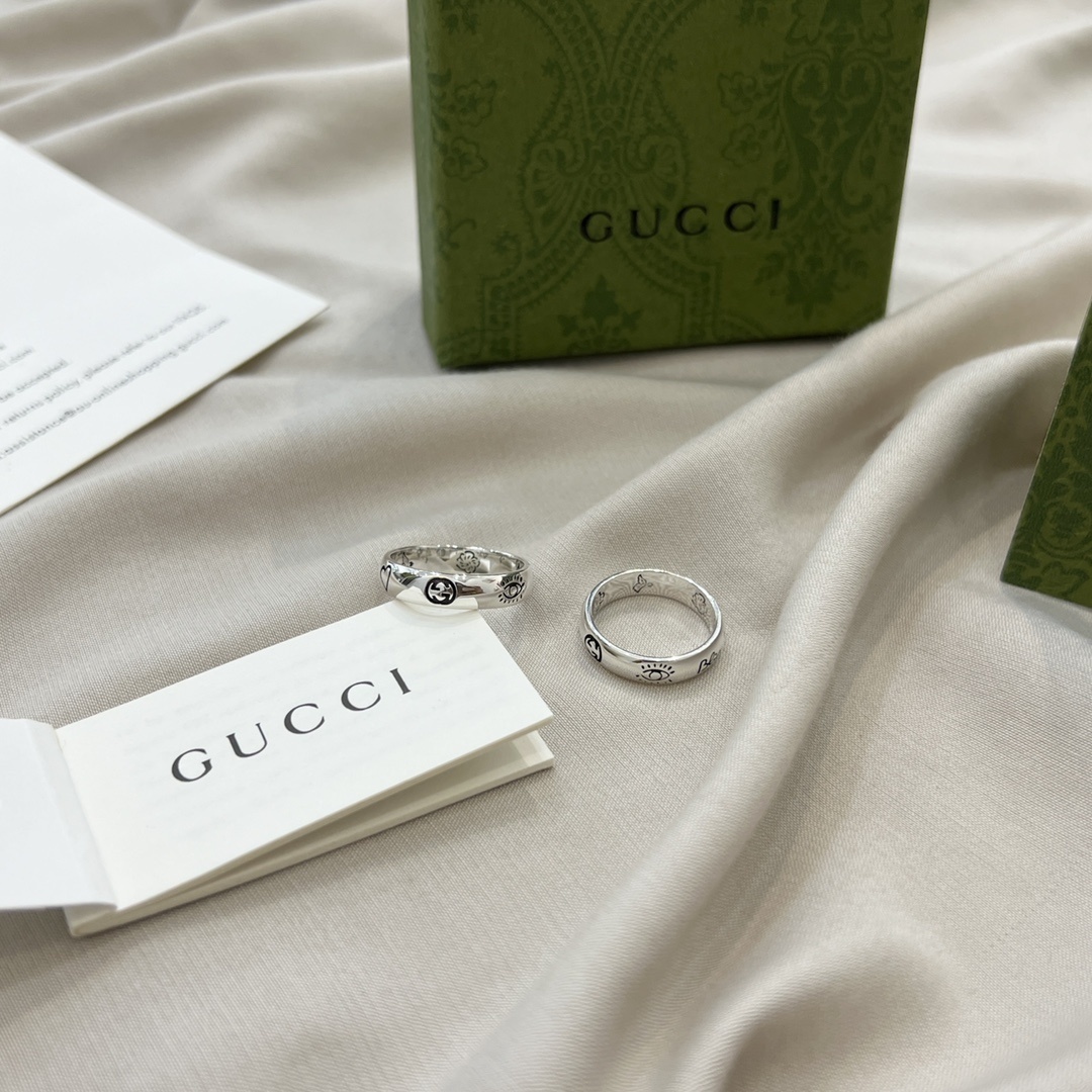 When not wearing the rings, store them in a jewelry box or pouch to protect them from scratches and tarnishing. Consider using a silver polishing cloth to restore the shine of the silver if it becomes dull over time. With proper care, your Gucci Silver Blind For Love Ring Set will maintain its beauty and elegance for many years.
