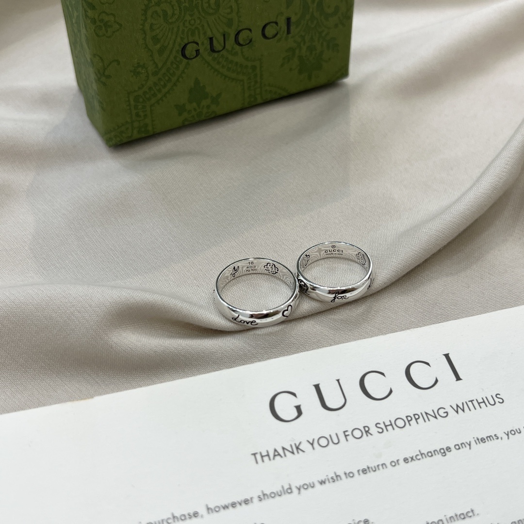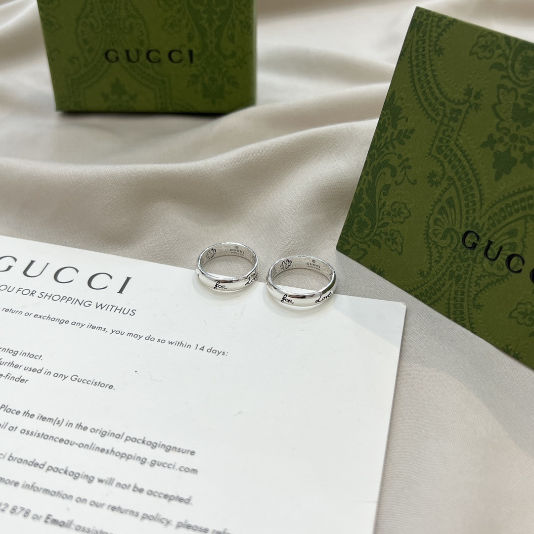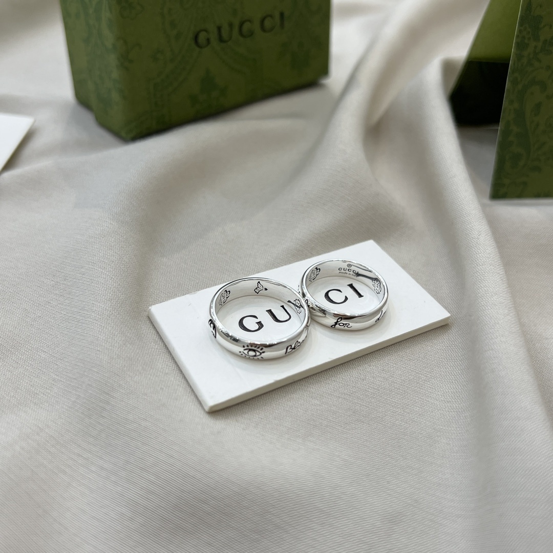 When not wearing the rings, store them in a jewelry box or pouch to protect them from scratches and tarnishing. Consider using a silver polishing cloth to restore the shine of the silver if it becomes dull over time. With proper care, your Gucci Silver Blind For Love Ring Set will maintain its beauty and elegance for many years.