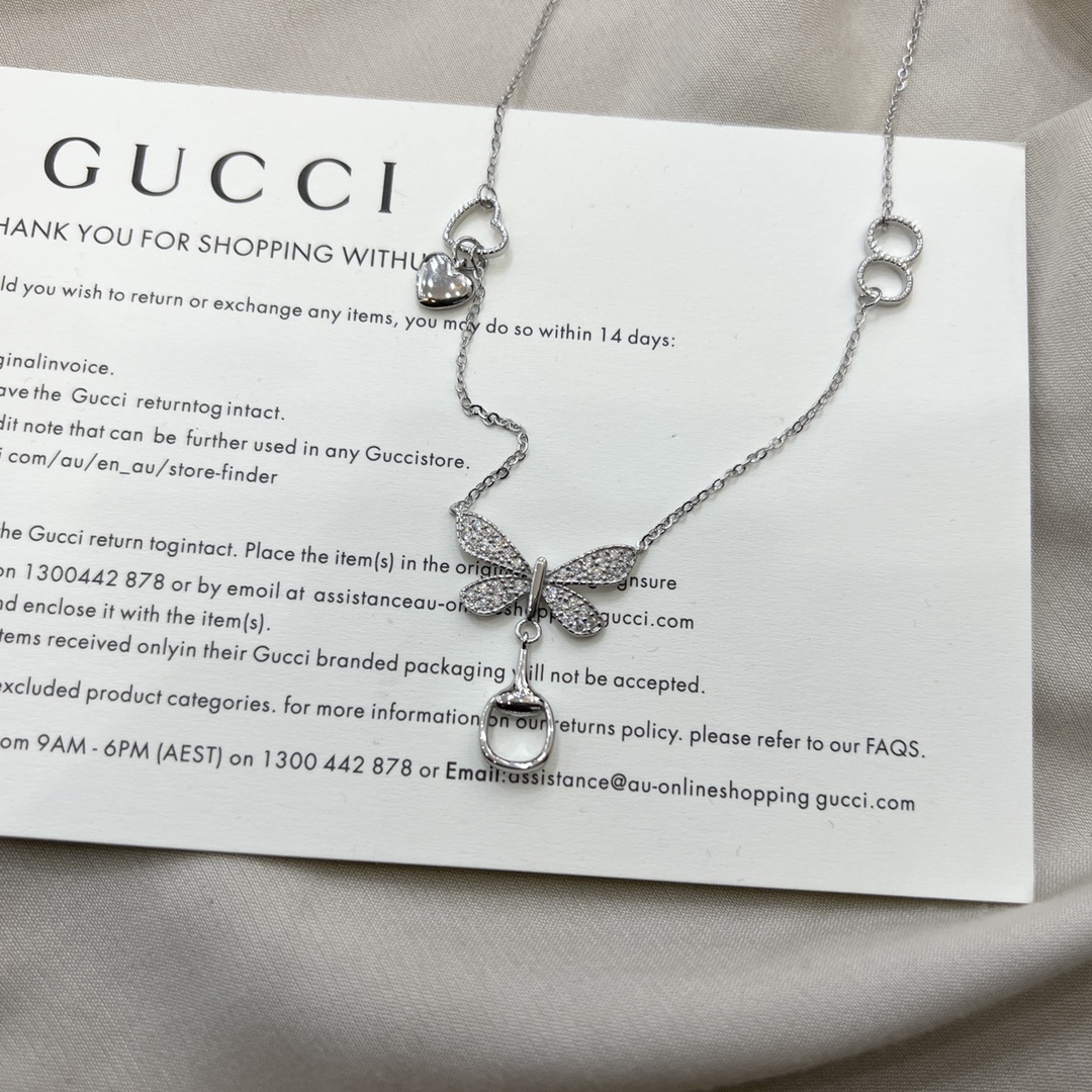 In addition to its timeless appeal, the Gucci Silver Butterfly Charm Necklace is also incredibly versatile. It can be worn with a wide range of outfits, from casual to formal, and it's suitable for any occasion. Whether you're heading to a business meeting, a romantic dinner, or a casual brunch with friends, this necklace will add a touch of elegance and sophistication to your look. You can explore our store collection.