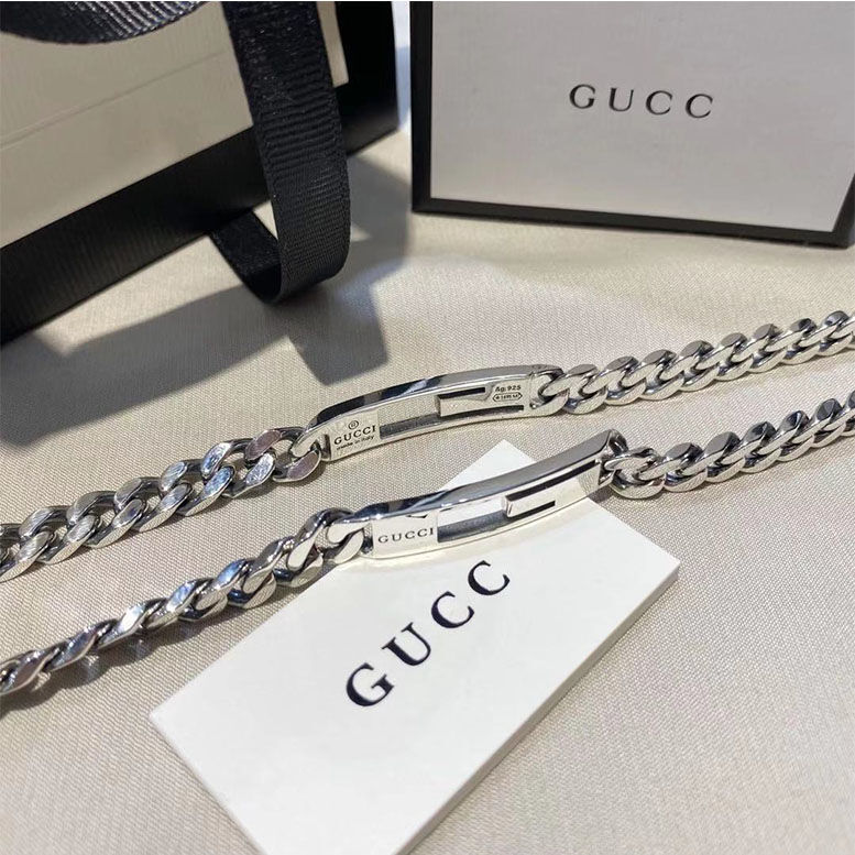 This bracelet is meticulously crafted from high-quality sterling silver, ensuring both durability and a lustrous shine that will last for years to come. The robust chain links are expertly assembled to create a comfortable and secure fit, while the signature Gucci engraving adds a touch of exclusivity.