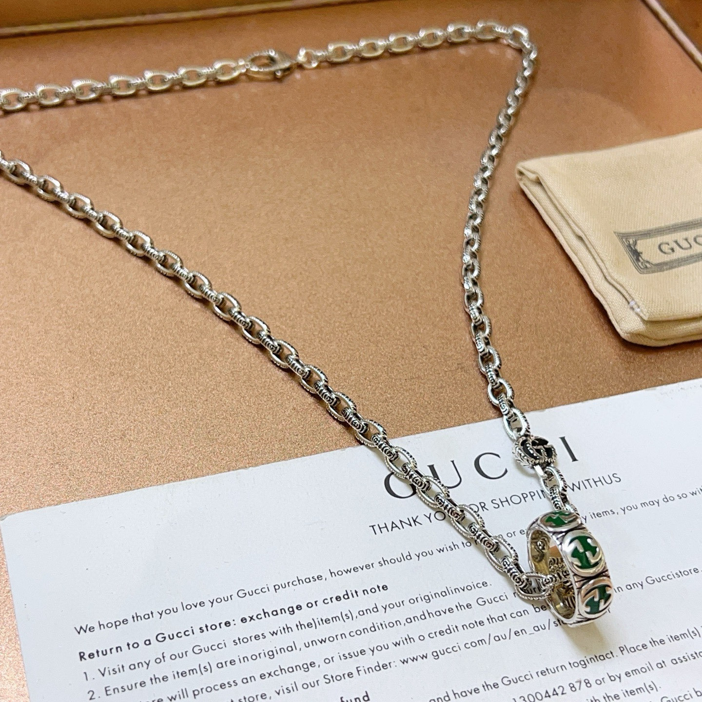 - Introducing the Gucci Silver Chain & Green Ring Set