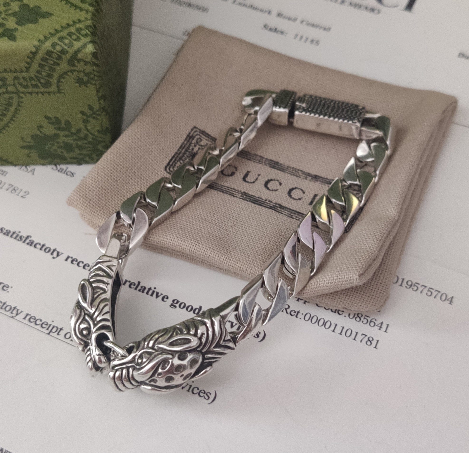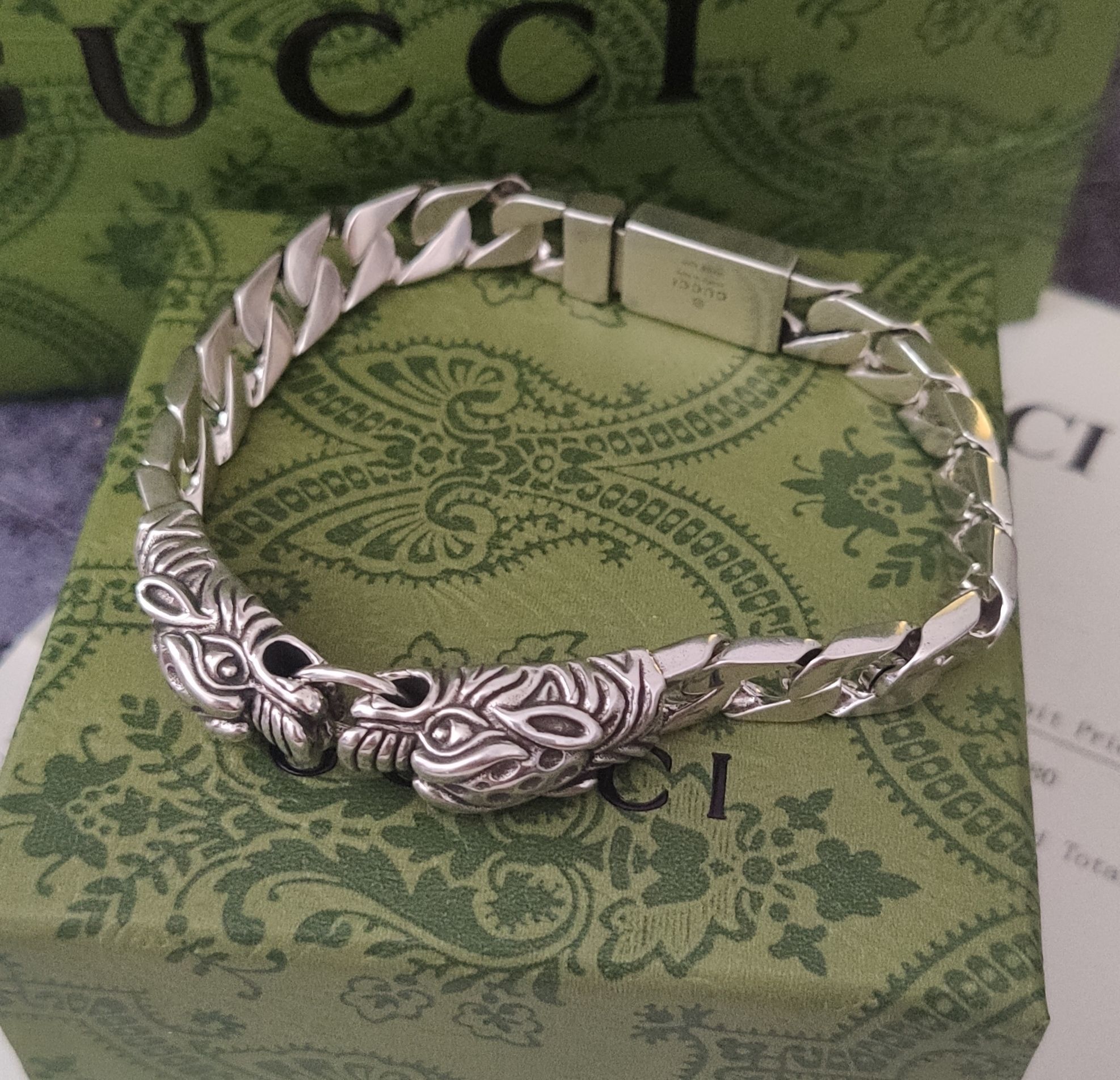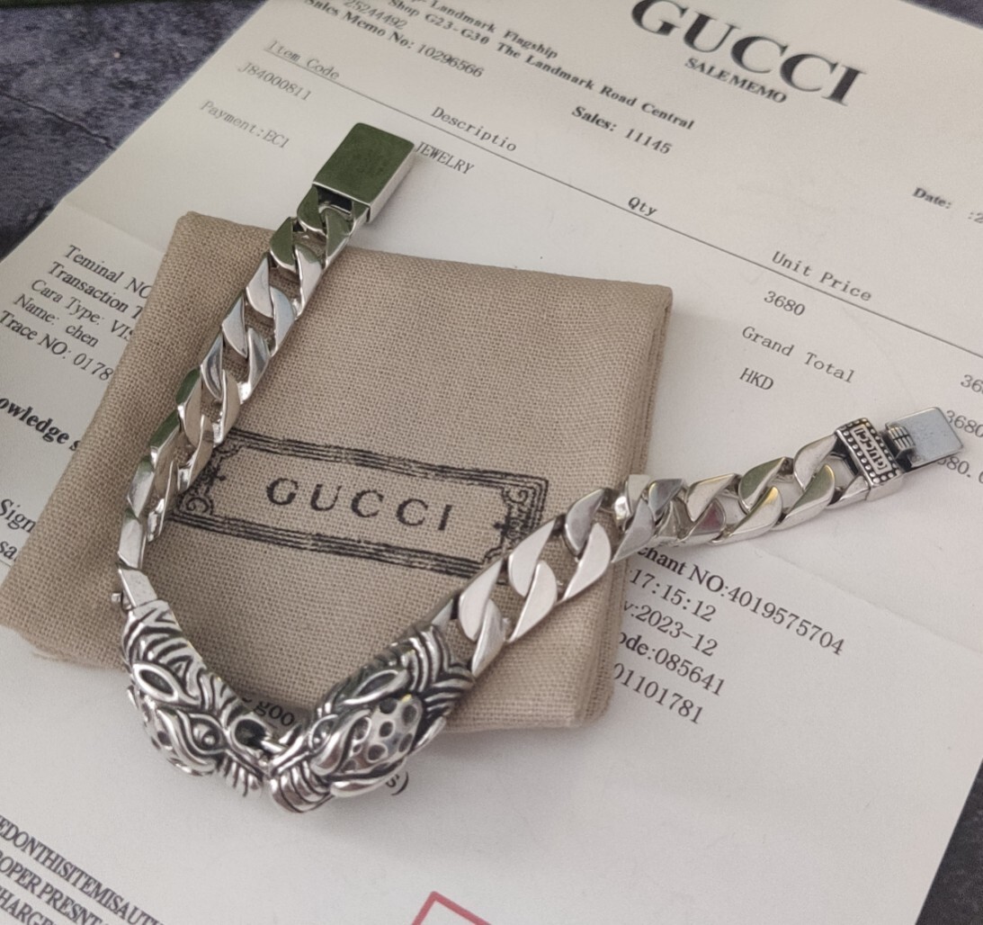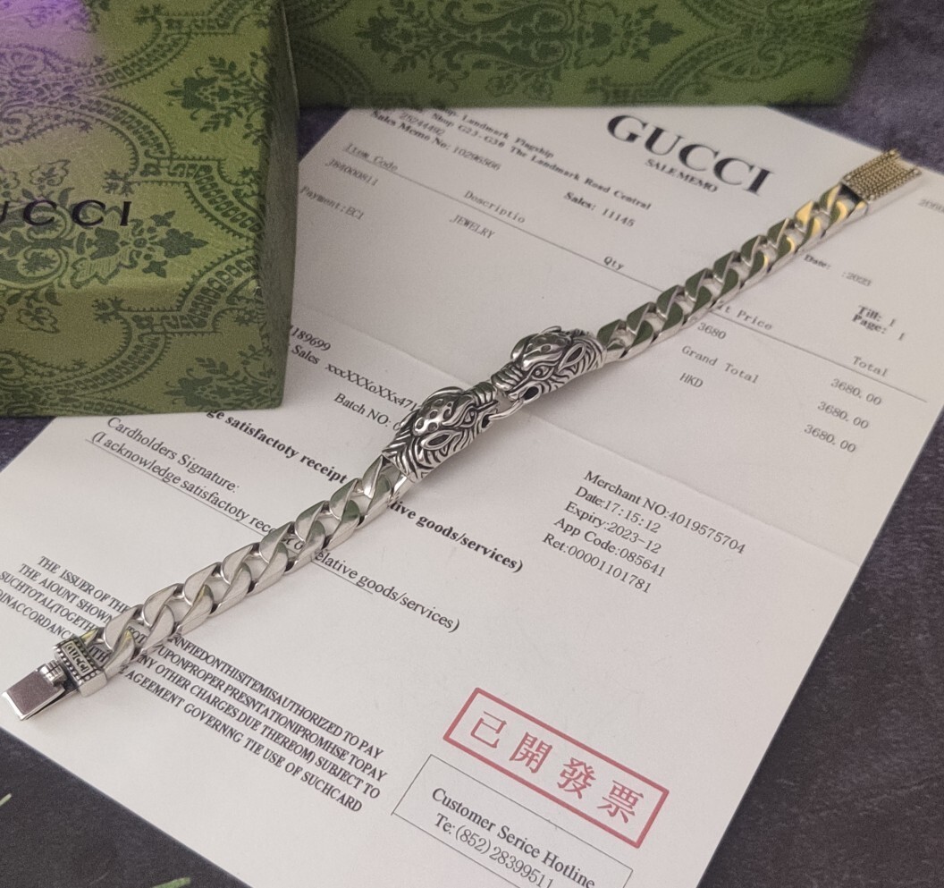 The dragon symbolizes power, strength, and good fortune. Wearing this Gucci bracelet allows you to embrace these qualities and express your individuality. Whether you're attending a business meeting, a social event, or simply going about your day, this bracelet will elevate your look and leave a lasting impression.