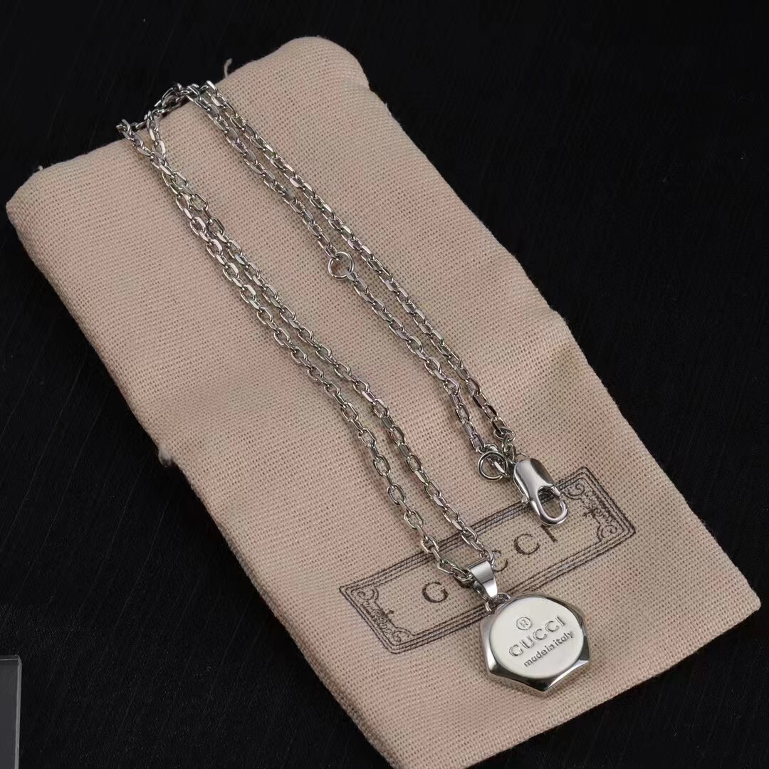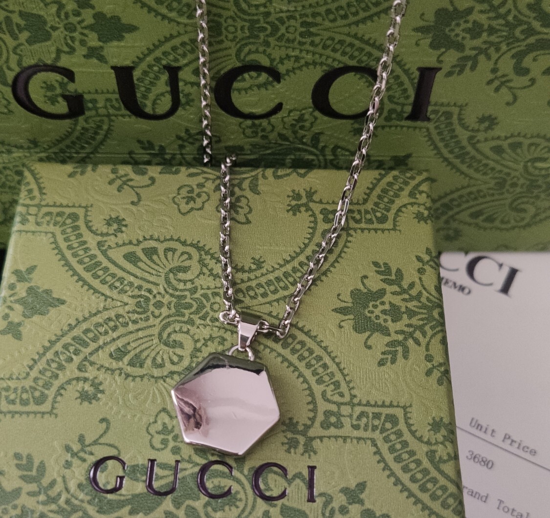 Introducing the Gucci Silver Hexagon Logo Necklace