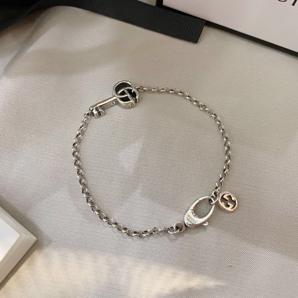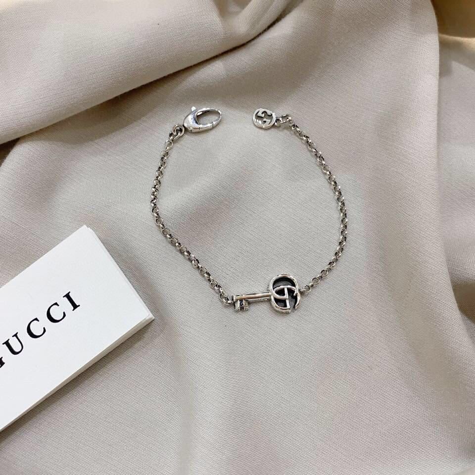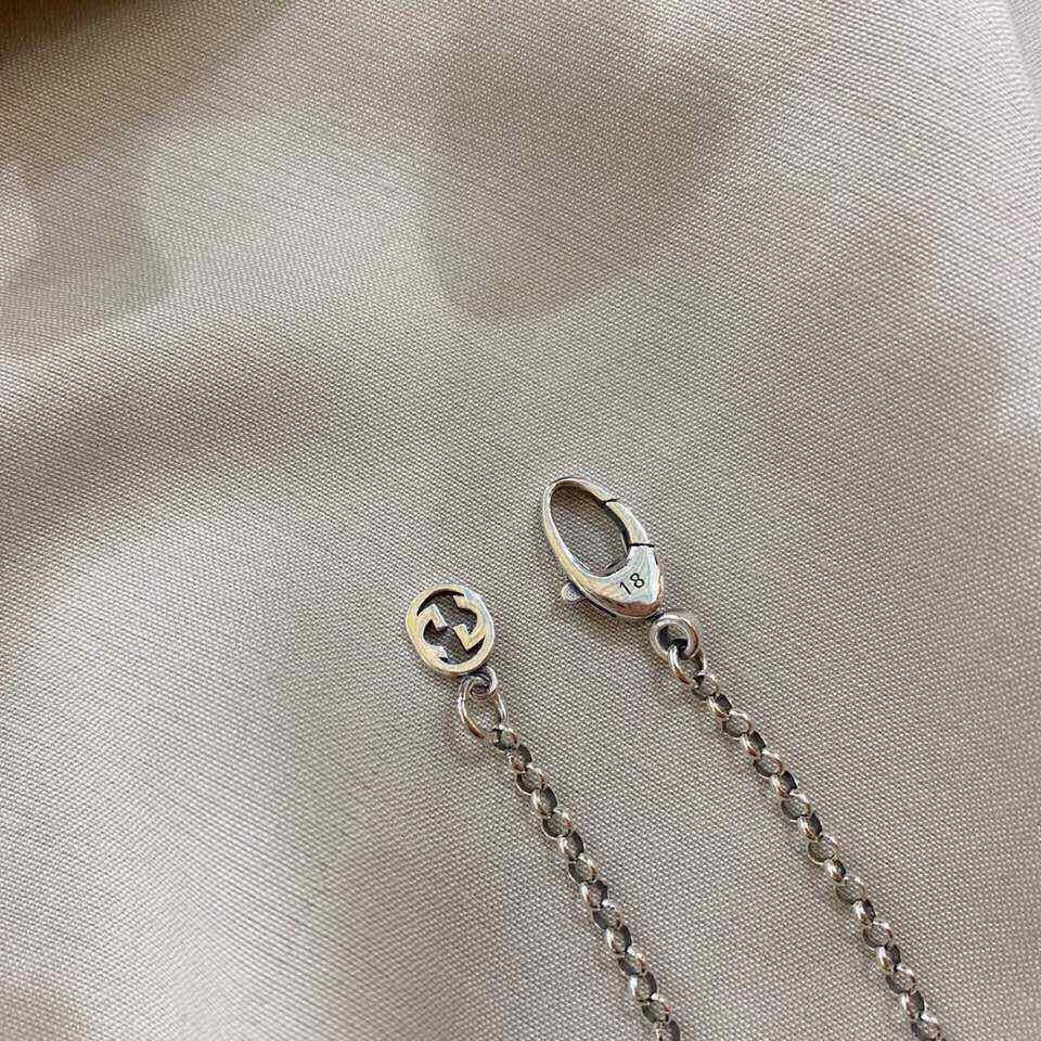 The Gucci Silver Key Charm Necklace is a timeless piece of jewelry that seamlessly blends iconic design with modern elegance. This exquisite necklace features the signature Interlocking G motif fashioned into a delicate key charm, suspended from a fine silver chain. Crafted from high-quality sterling silver, this necklace exudes sophistication and offers a subtle yet distinctive statement. Whether you're dressing up for a special occasion or adding a touch of luxury to your everyday attire, the Gucci Silver Key Charm Necklace is the perfect accessory.