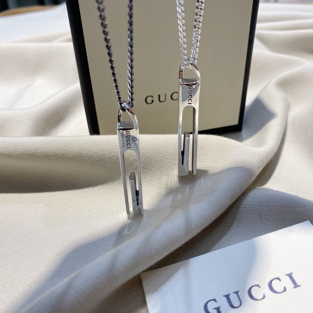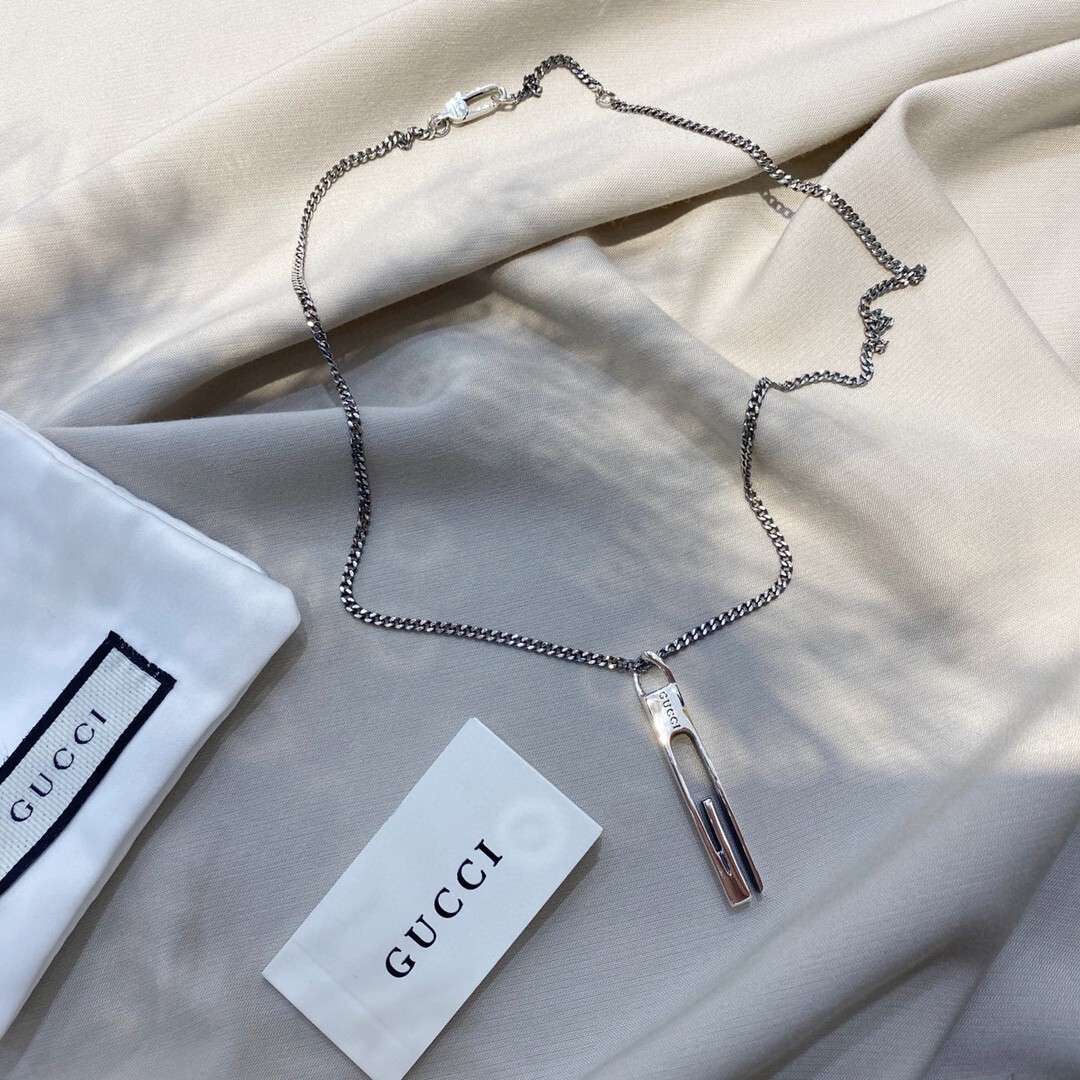 Gucci Silver Safety Pin Necklace - Modern Chain Pendant