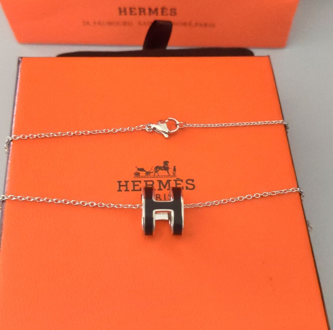 - Introducing the Hermès Black & Silver 'H' Pendant Necklace