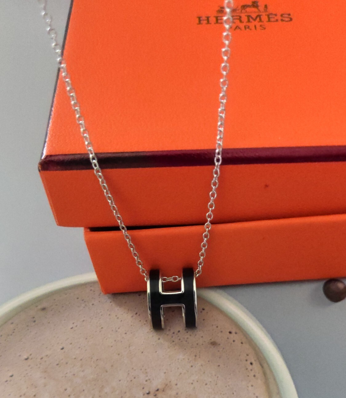 Why Choose the Hermès Black & Silver 'H' Pendant Necklace?