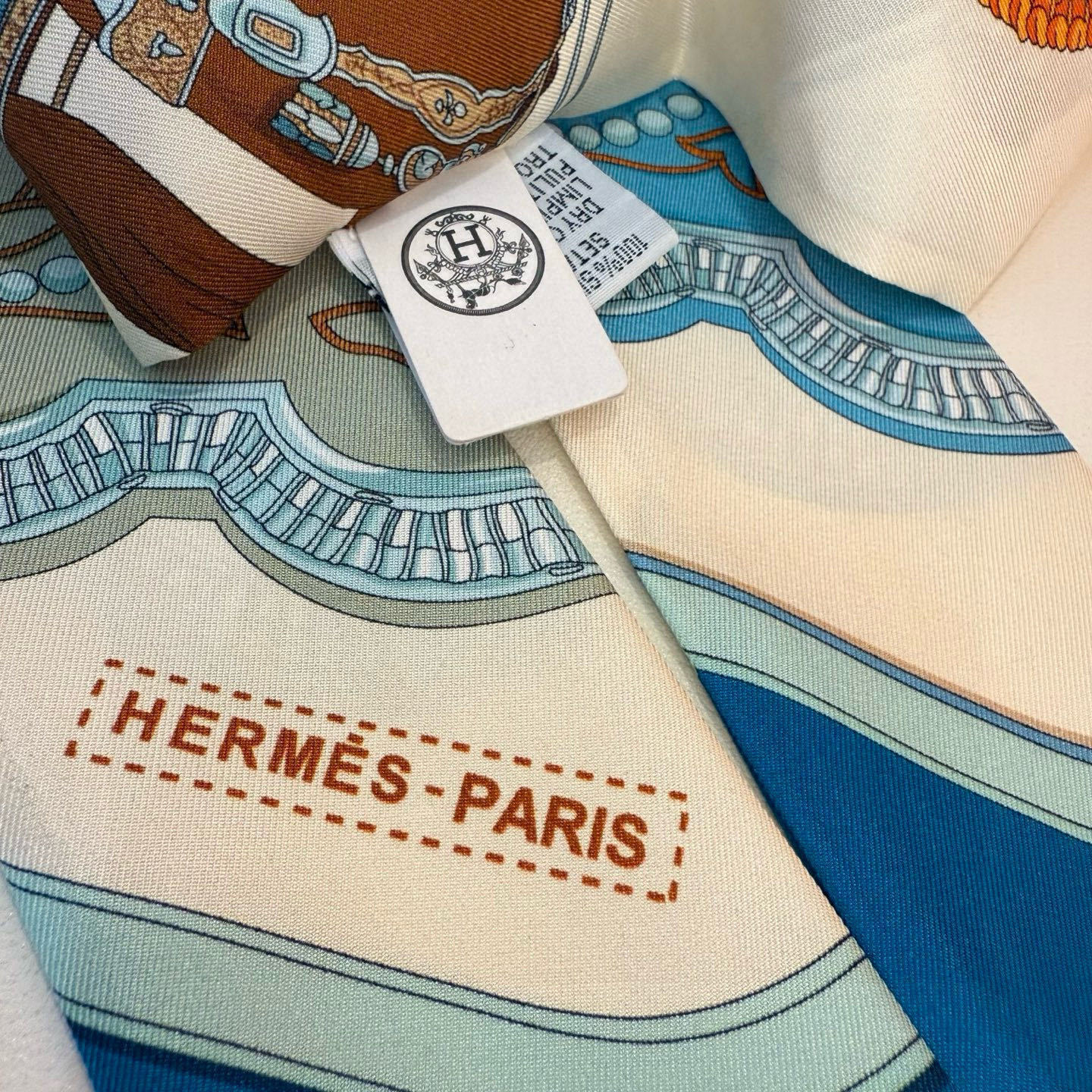 Why Choose the Hermès Blue & Ivory Cavalcadour Silk Twilly Scarf?