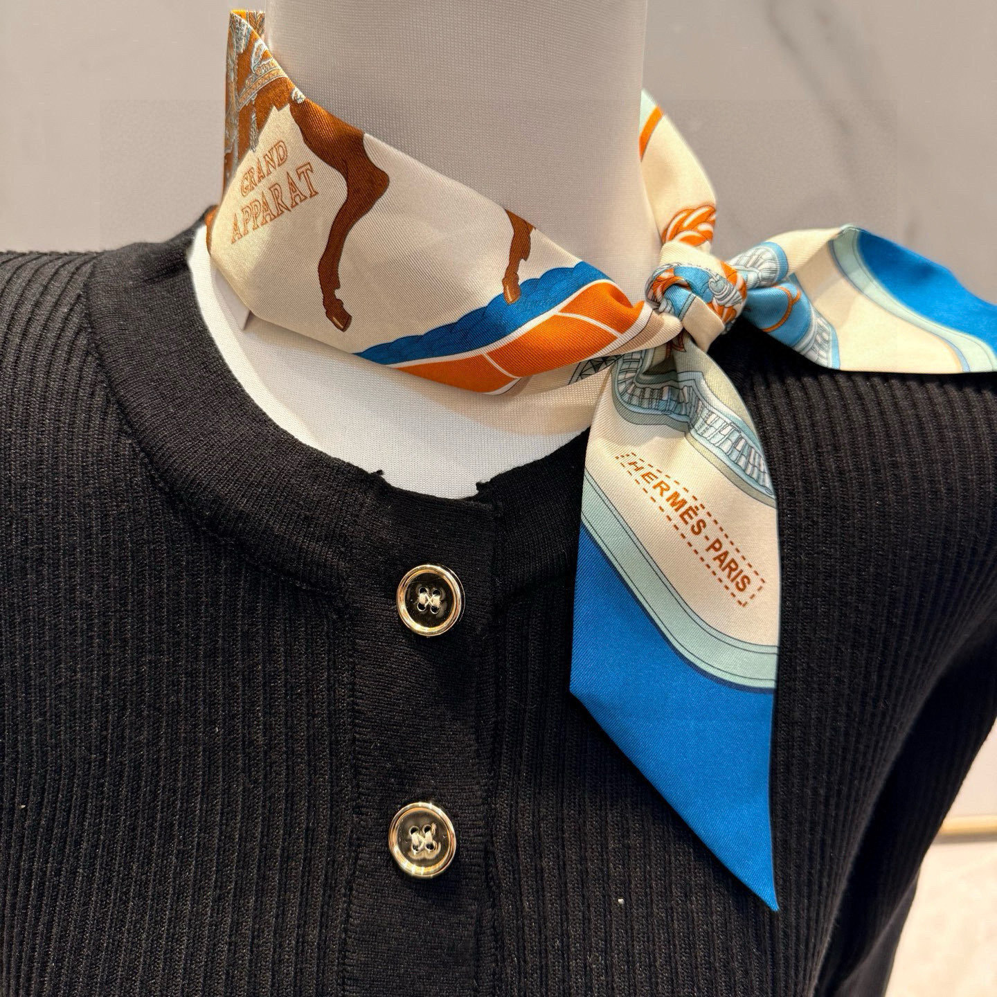 Investing in the Hermès Blue & Ivory Cavalcadour Silk Twilly Scarf is a decision that brings numerous benefits. Here’s why it stands out: