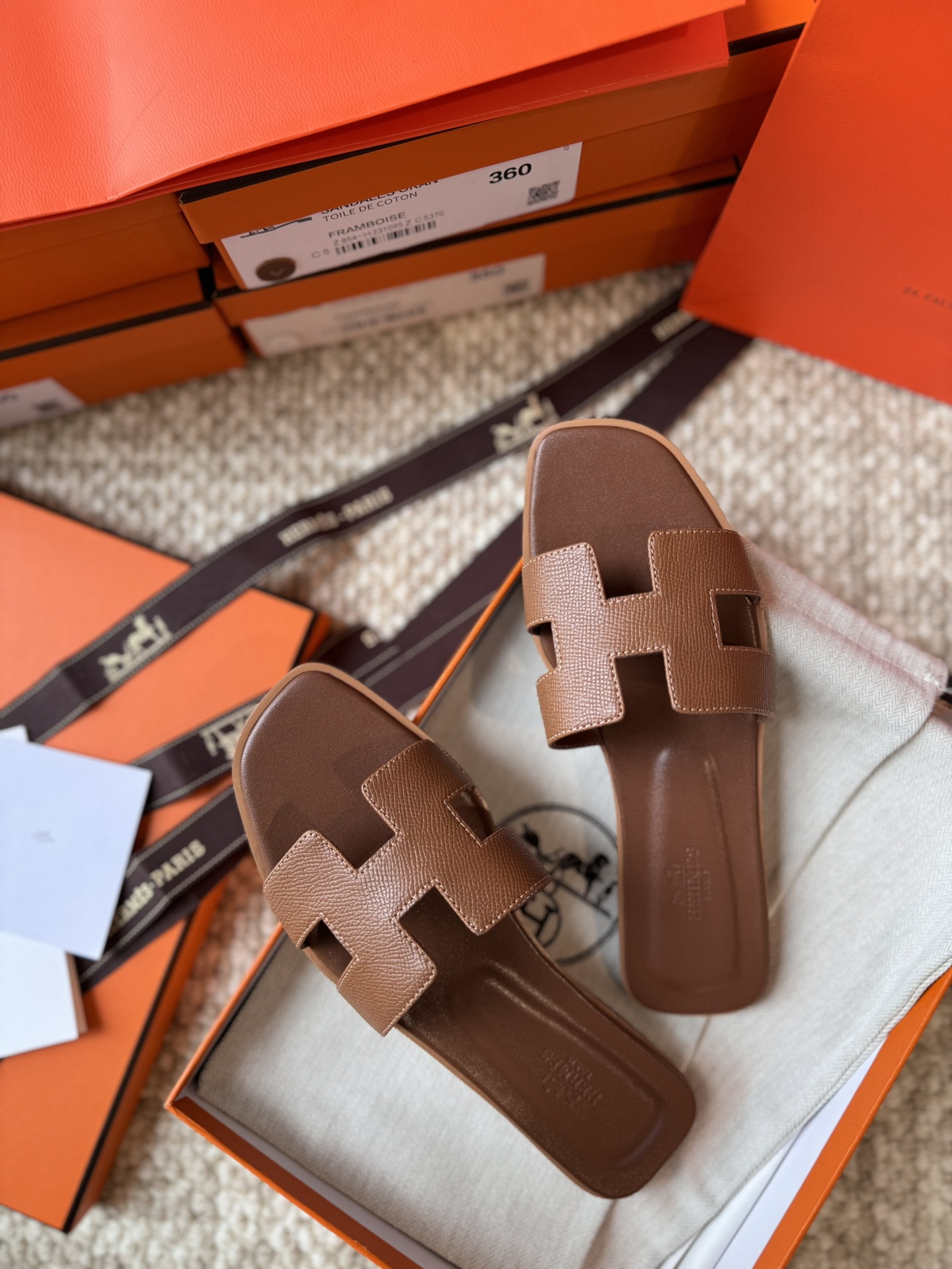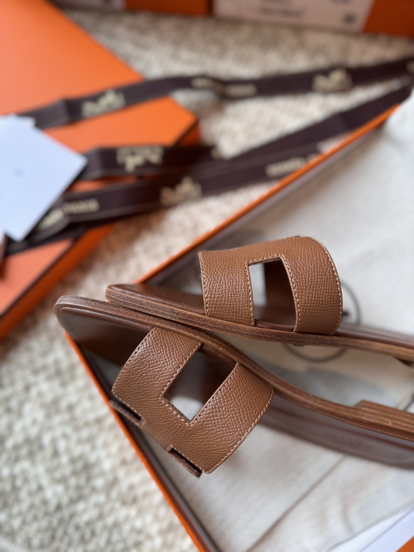 Unveiling the Details of the Hermès Gold Brown Leather Oran Sandals