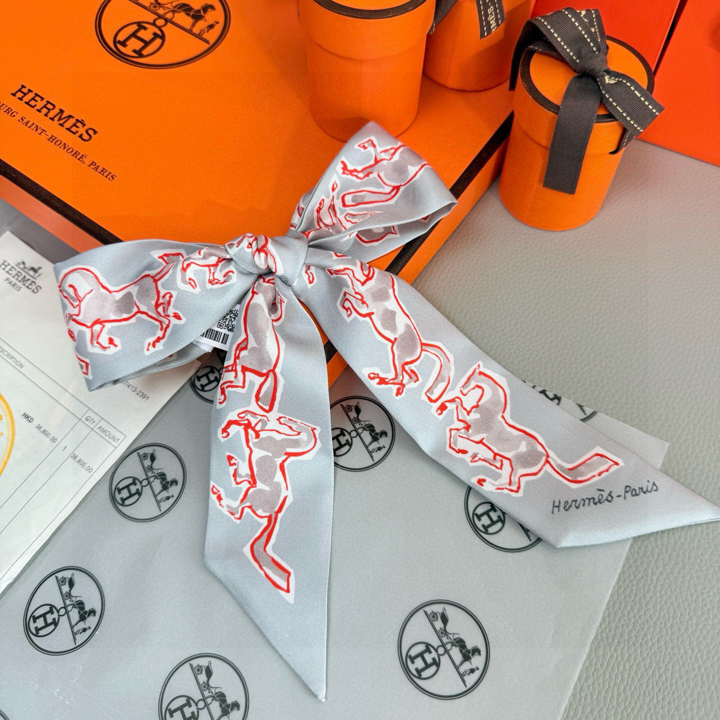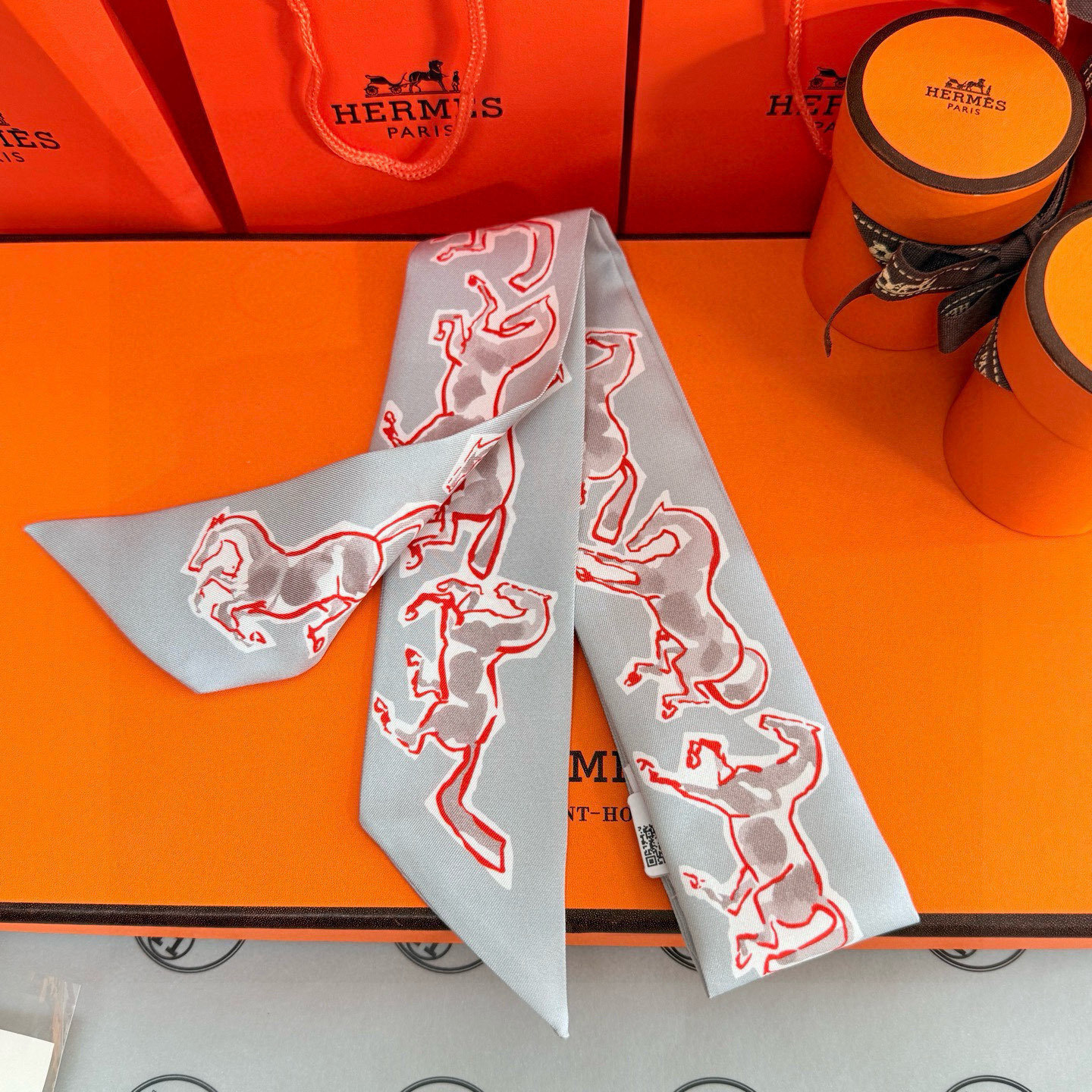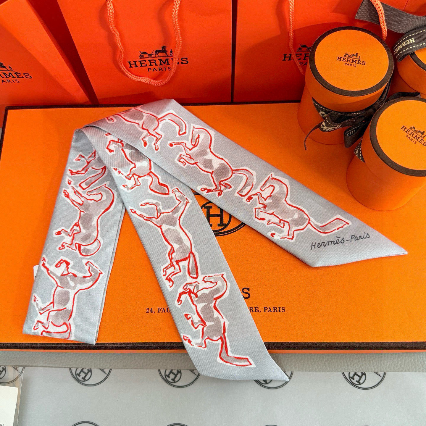 Introducing the Hermès Gray Silk Twilly with Horse Motif