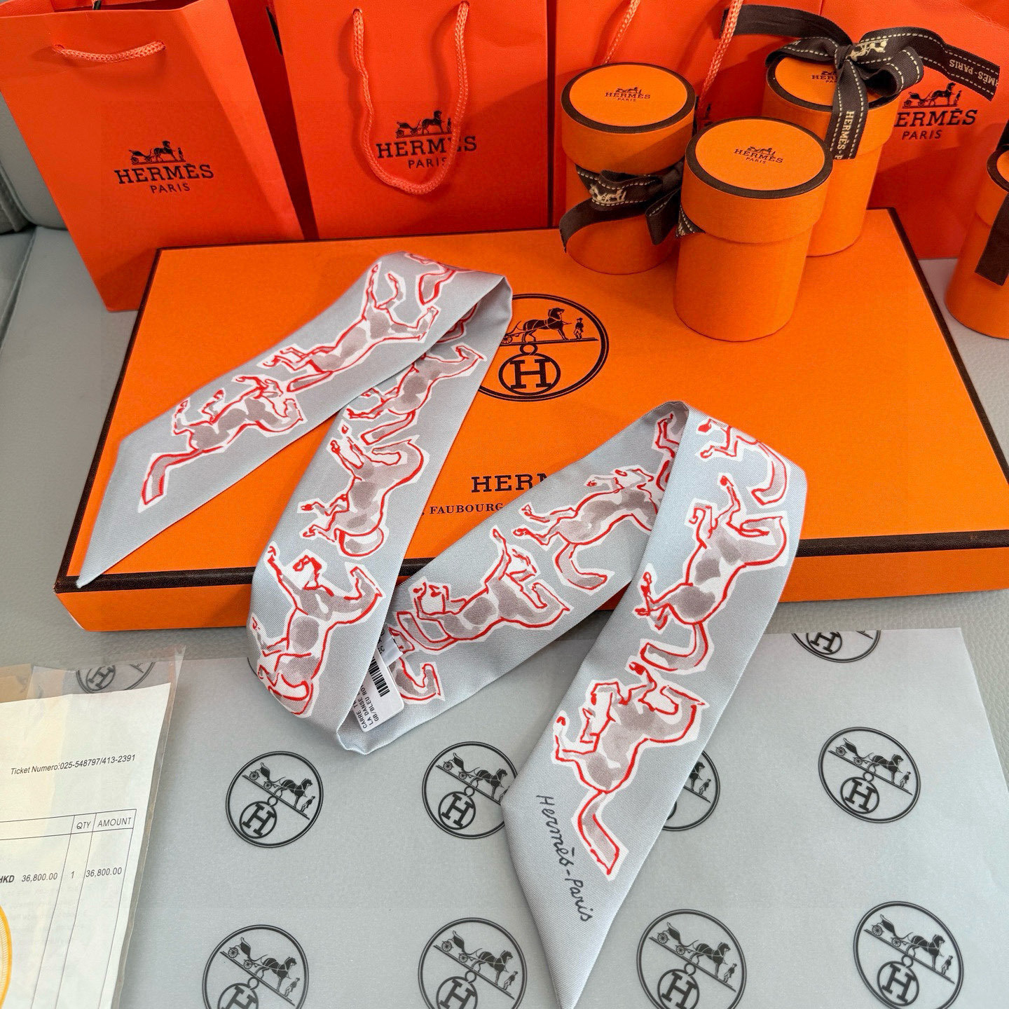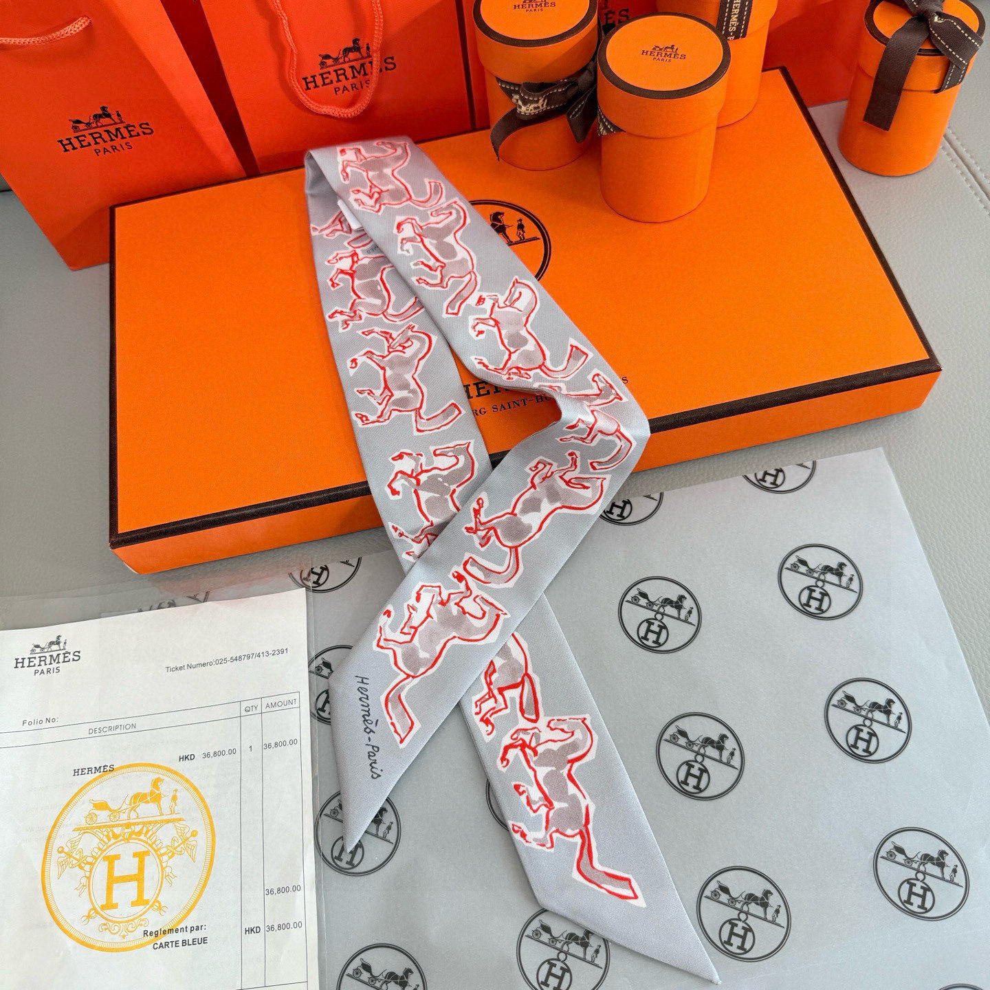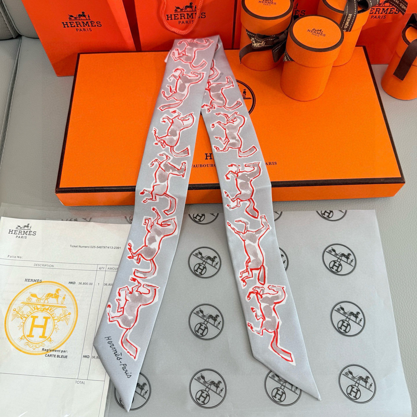 Introducing the Hermès Gray Silk Twilly with Horse Motif