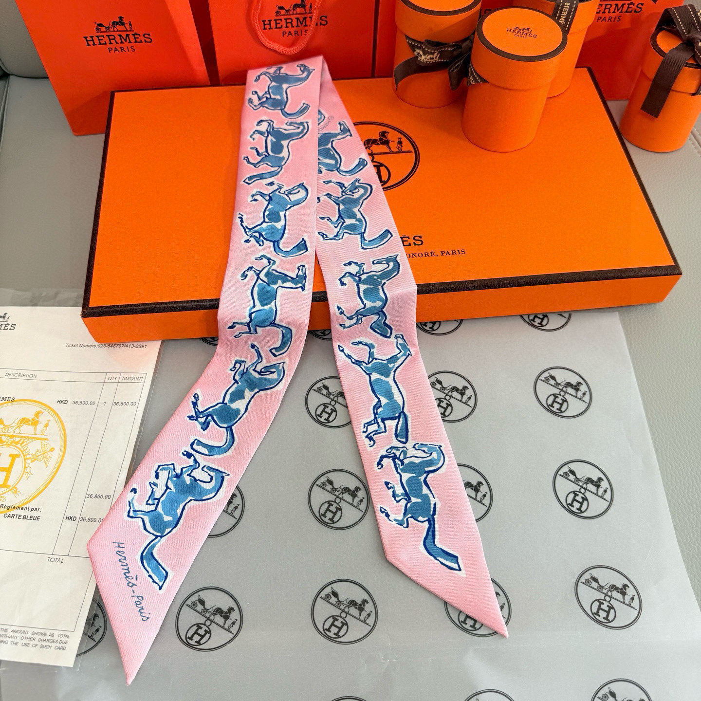 - Unique Design: The playful yet refined design of jumping horses sets the twilly apart from other accessories. Its distinctive pattern reflects Hermès' commitment to artistry and creativity.