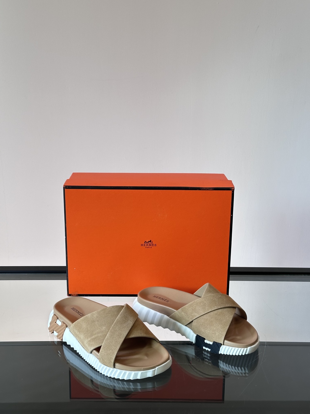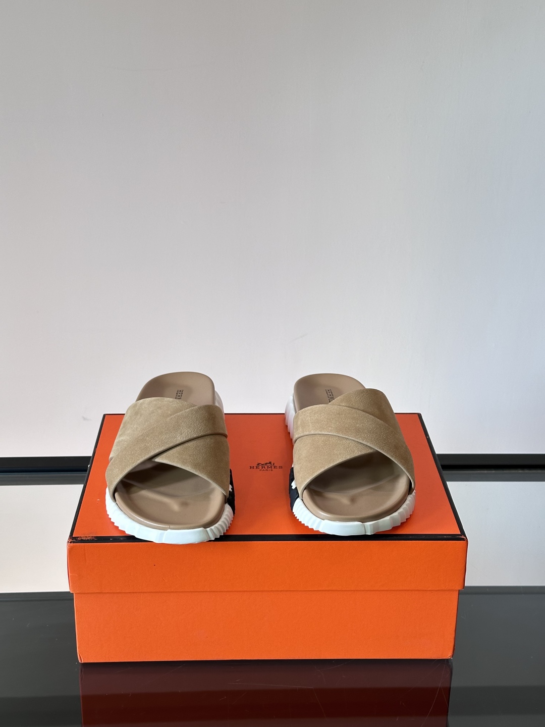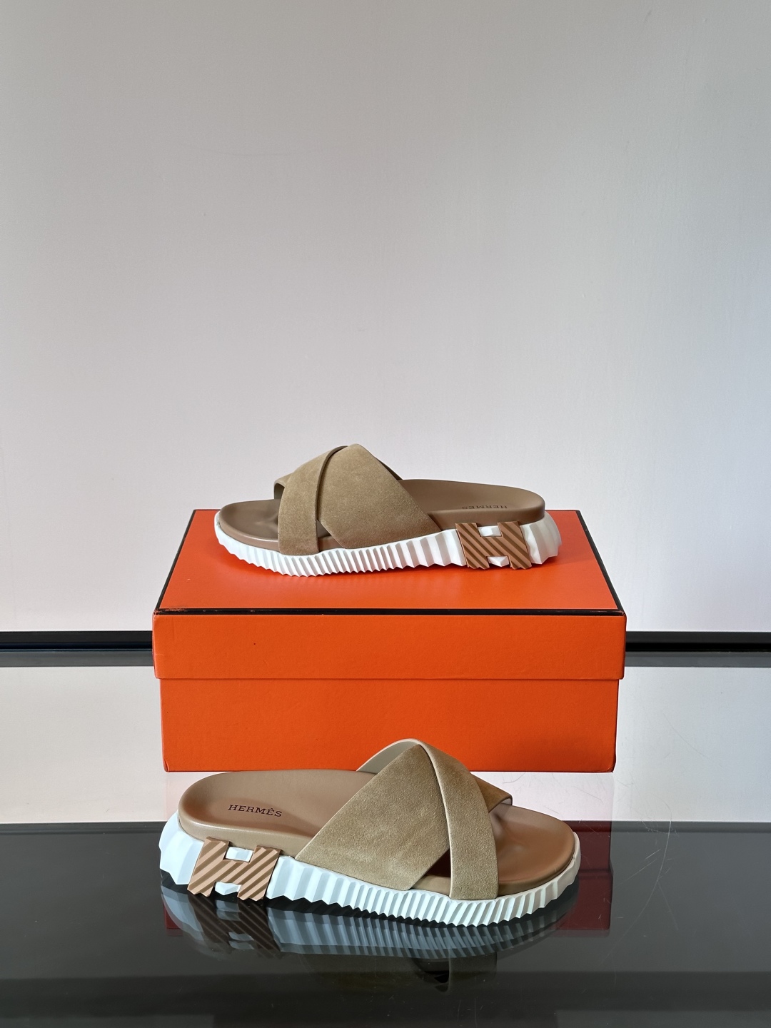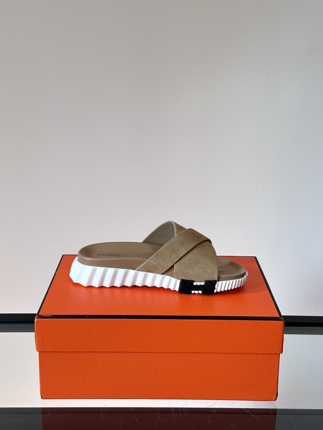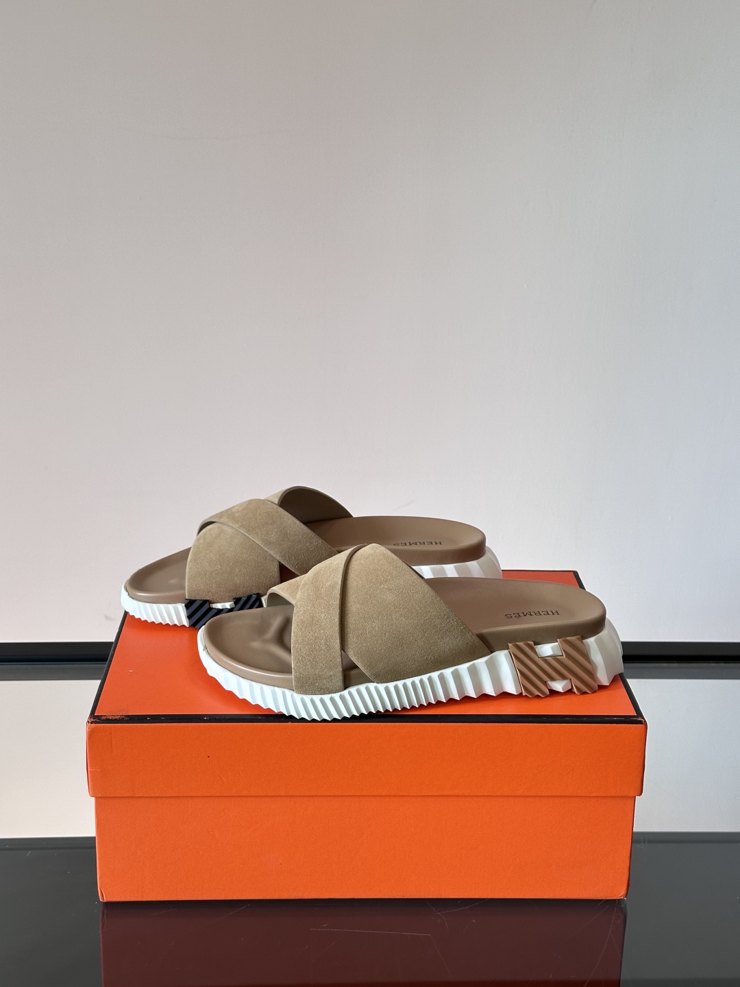 Introducing the Hermรจs Khaki Suede Cross Slides