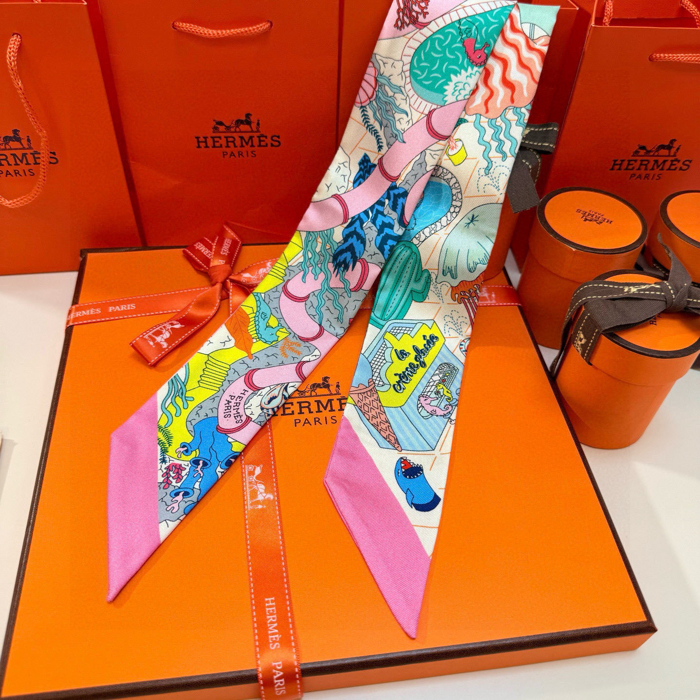 Hermès La Plage Twilly - Hermès 'La Plage' Silk Twilly - Vibrant