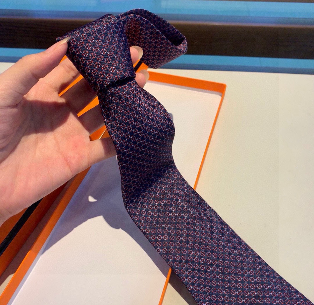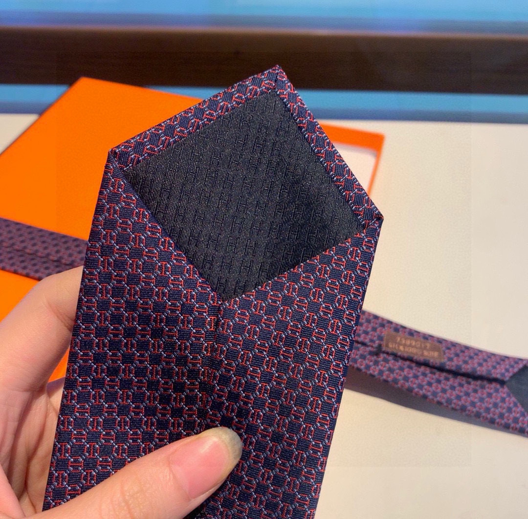 Q: What is the material of the Hermès Navy Red Pattern Tie?
