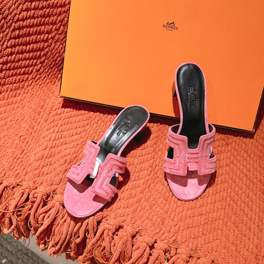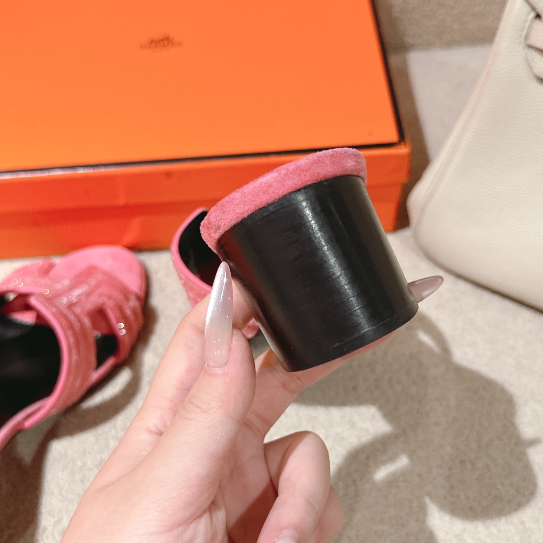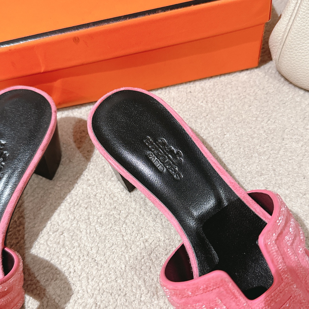 Introducing the Hermรจs Pink Suede Heeled Slides
