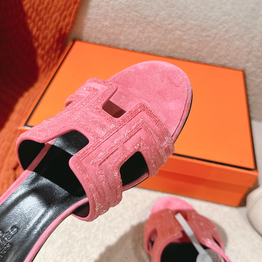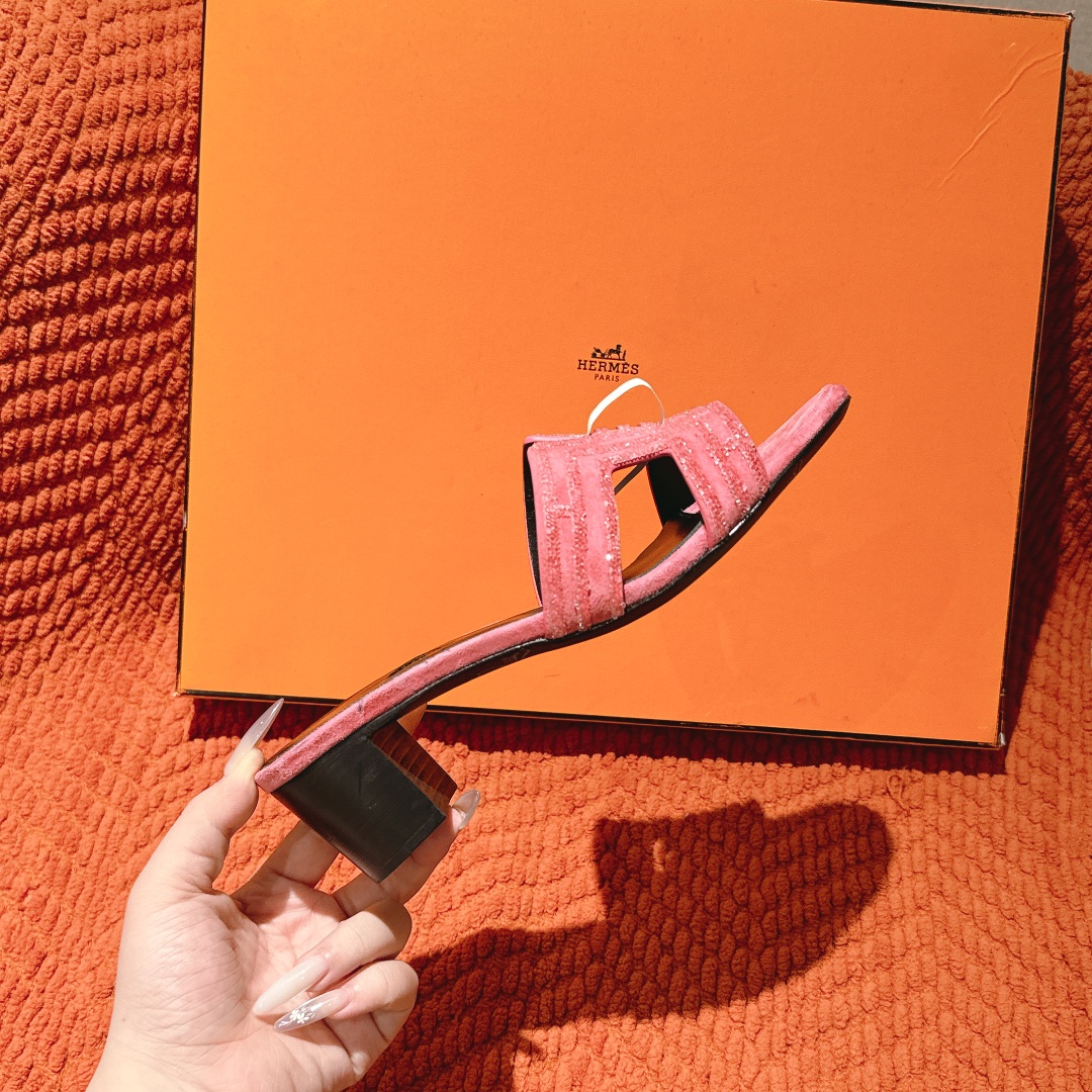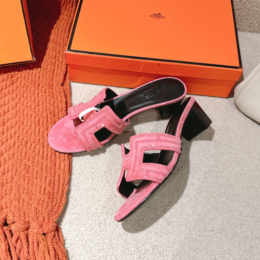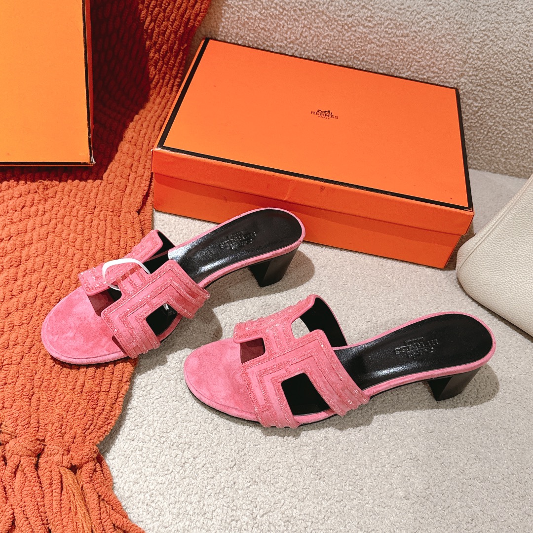Introducing the Hermรจs Pink Suede Heeled Slides