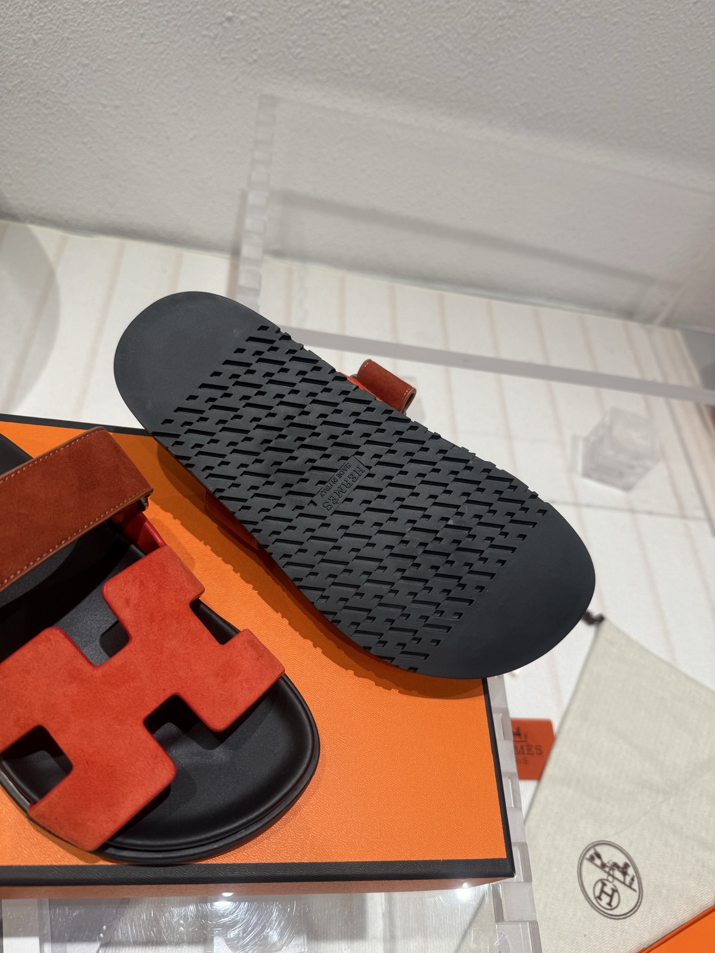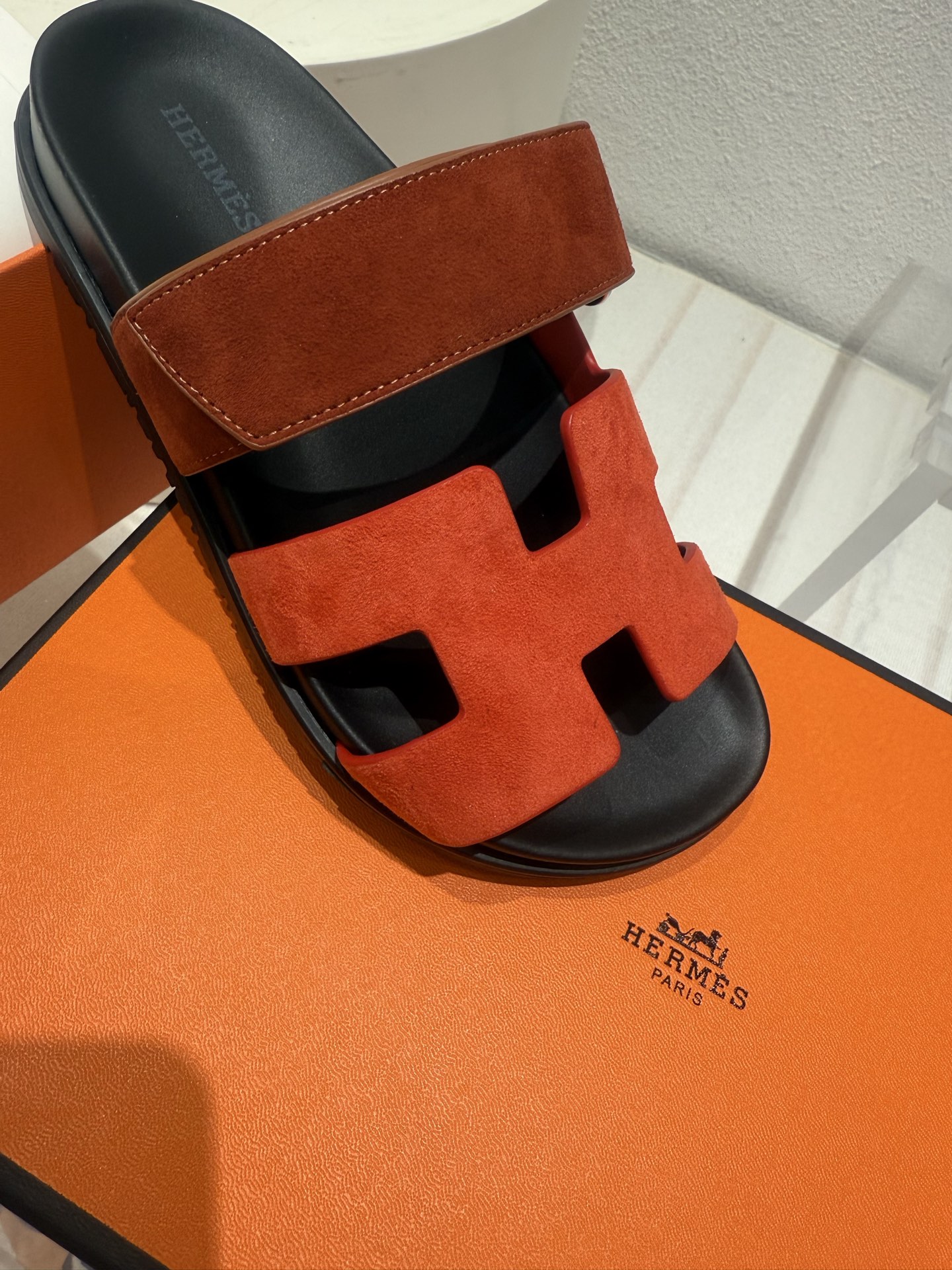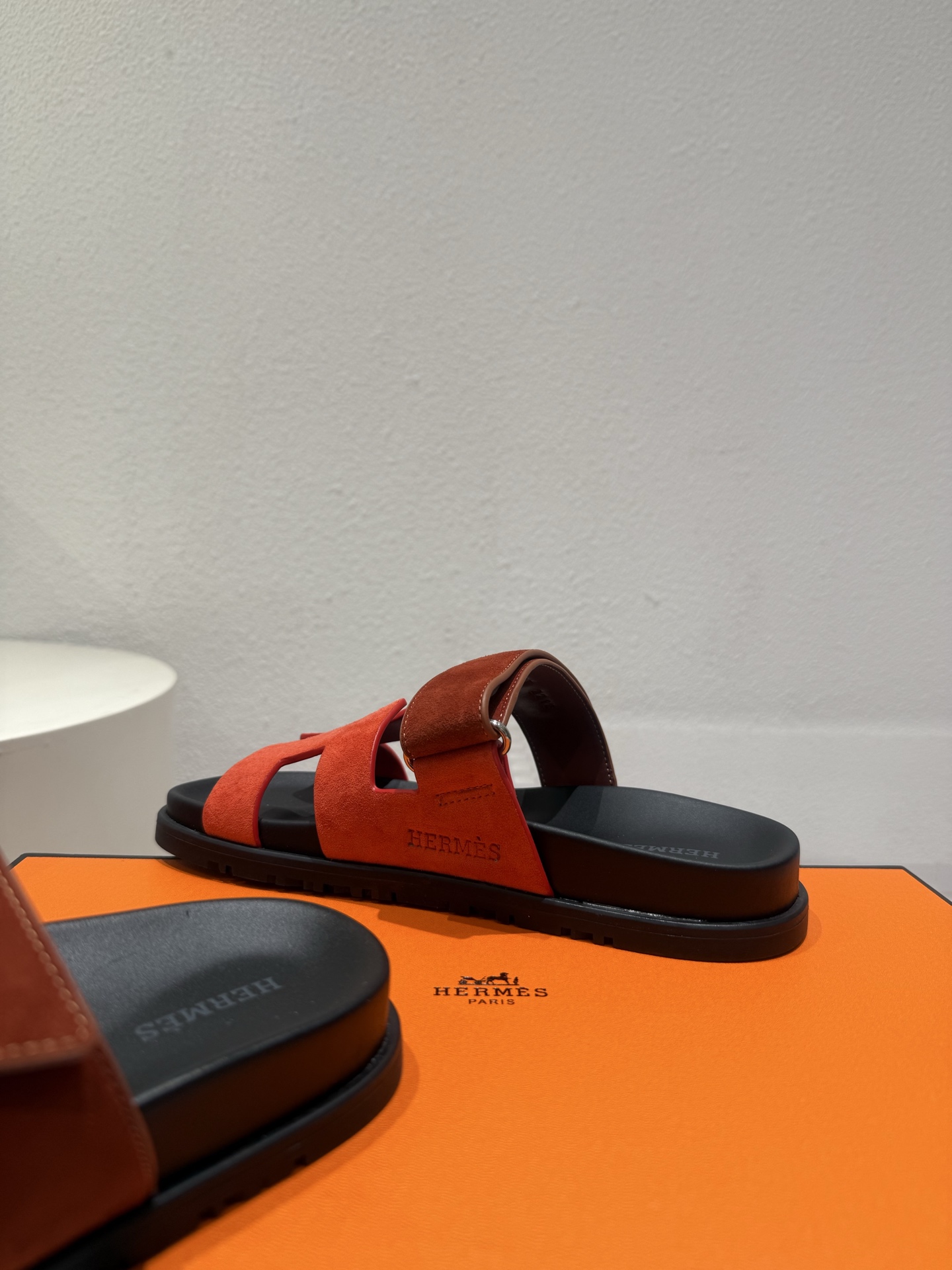 Introducing the Hermรจs Suede Orange 'H' Slides
