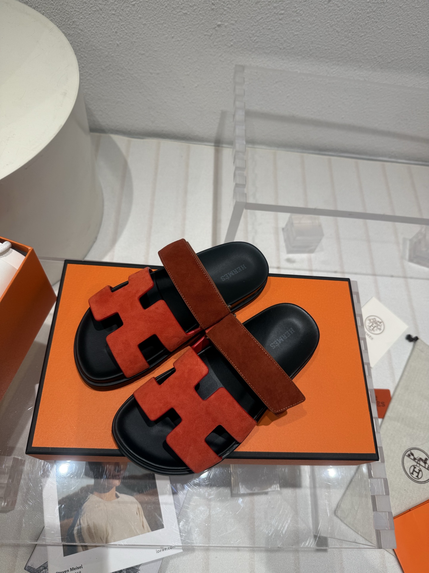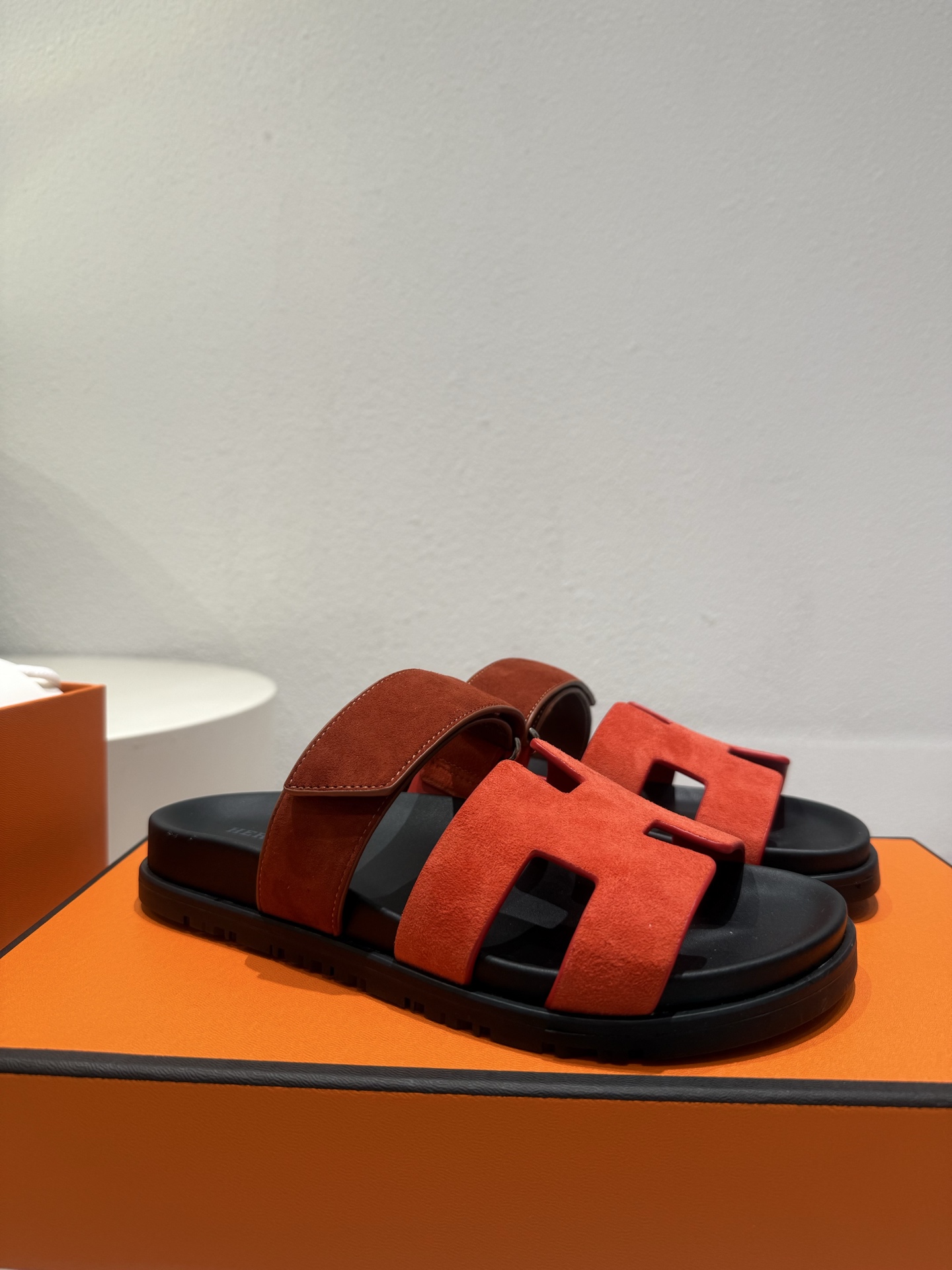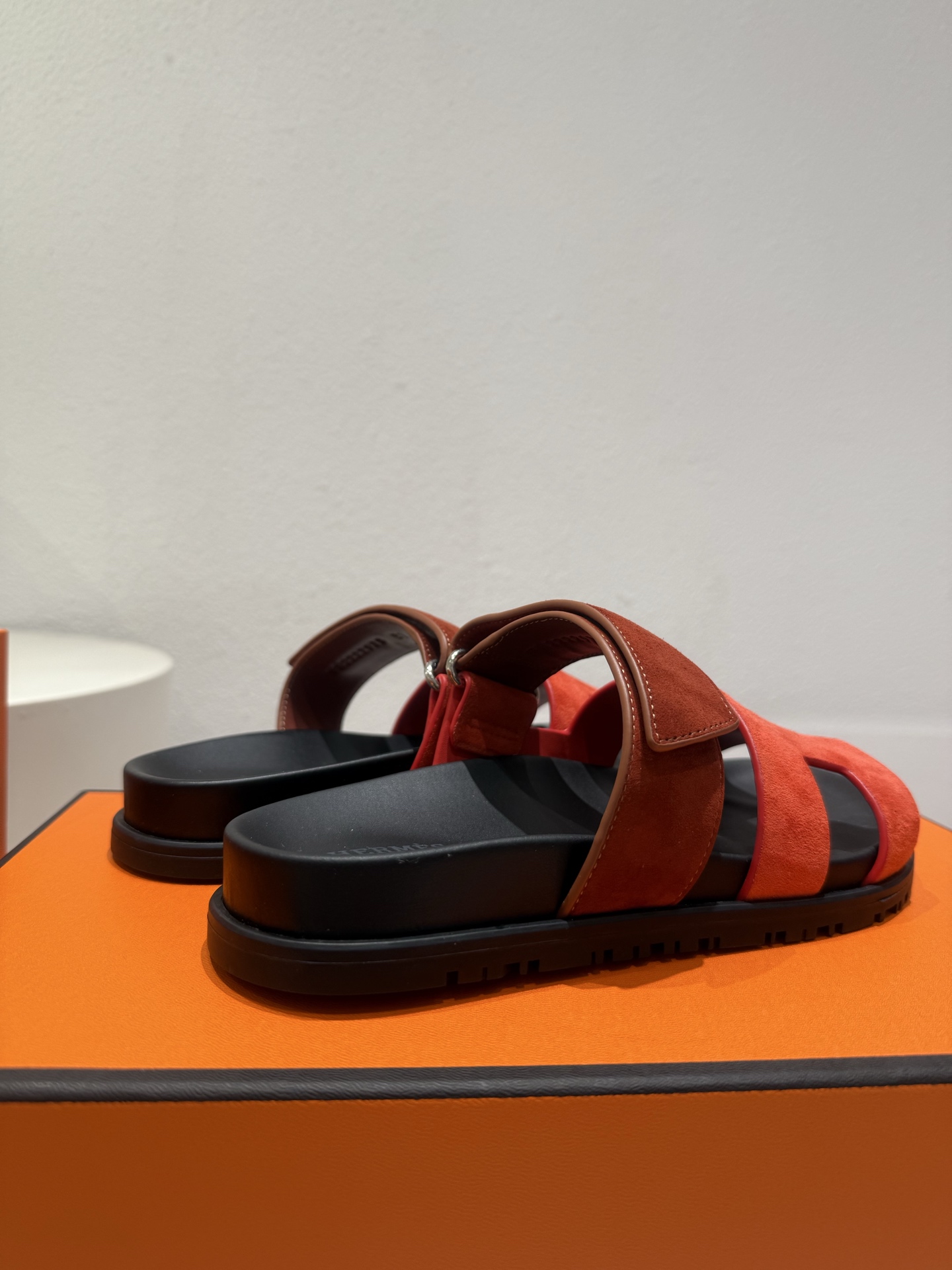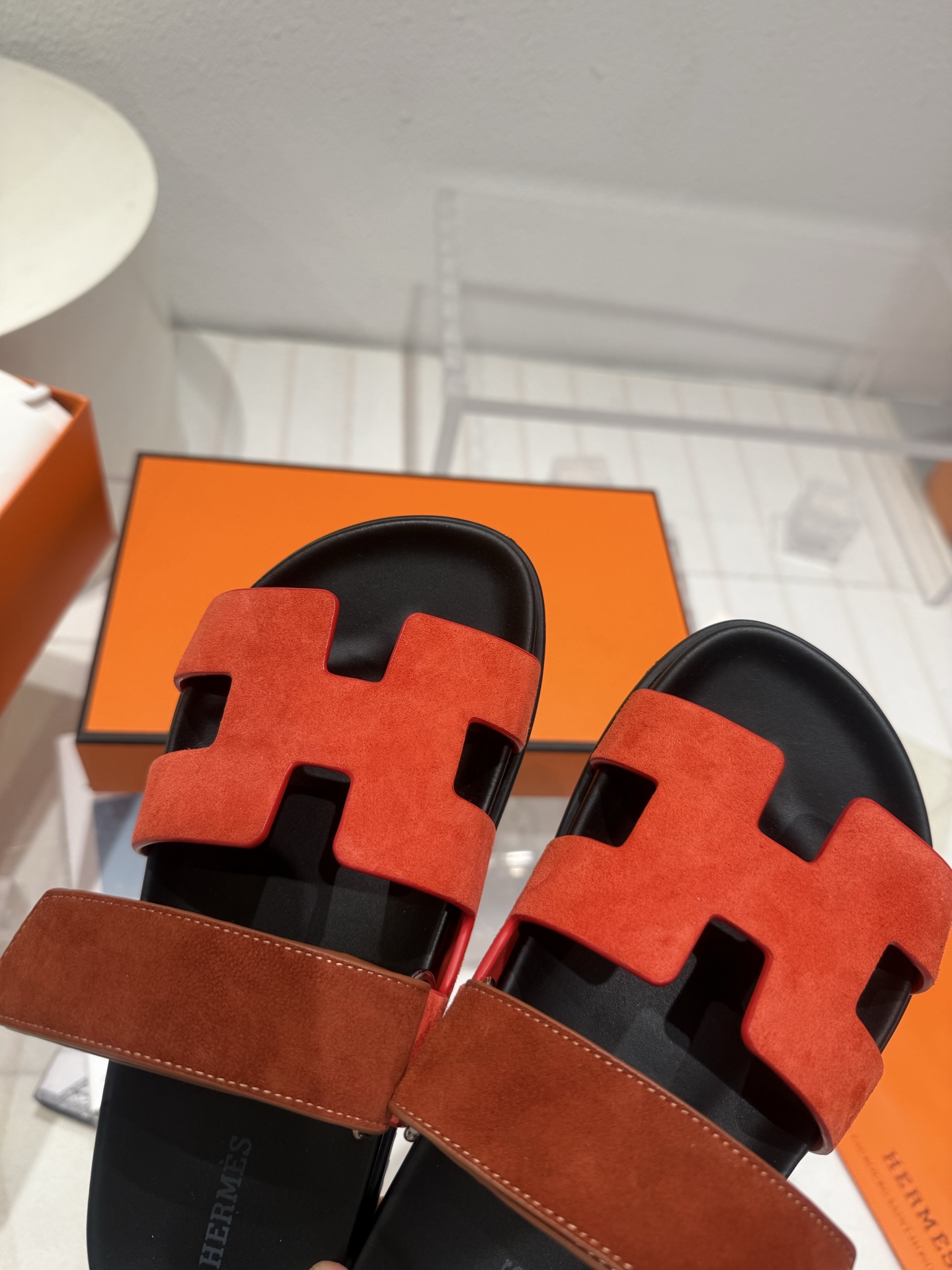 Introducing the Hermรจs Suede Orange 'H' Slides