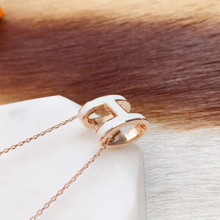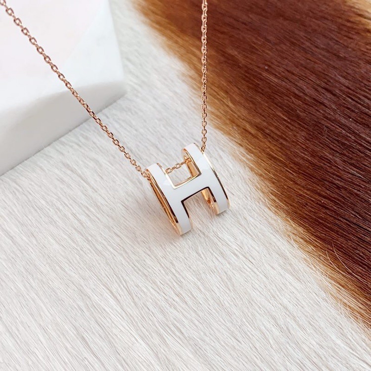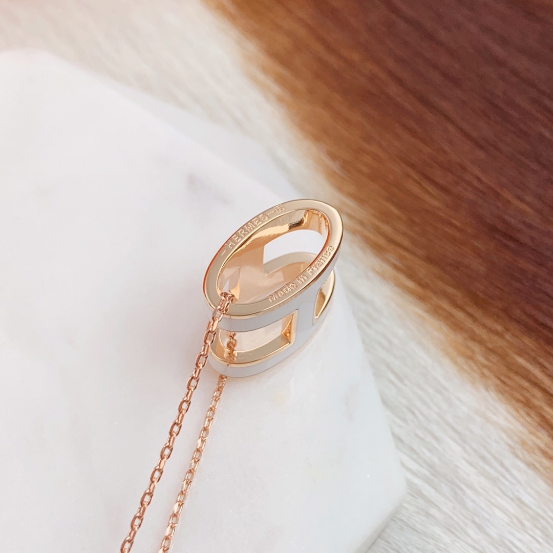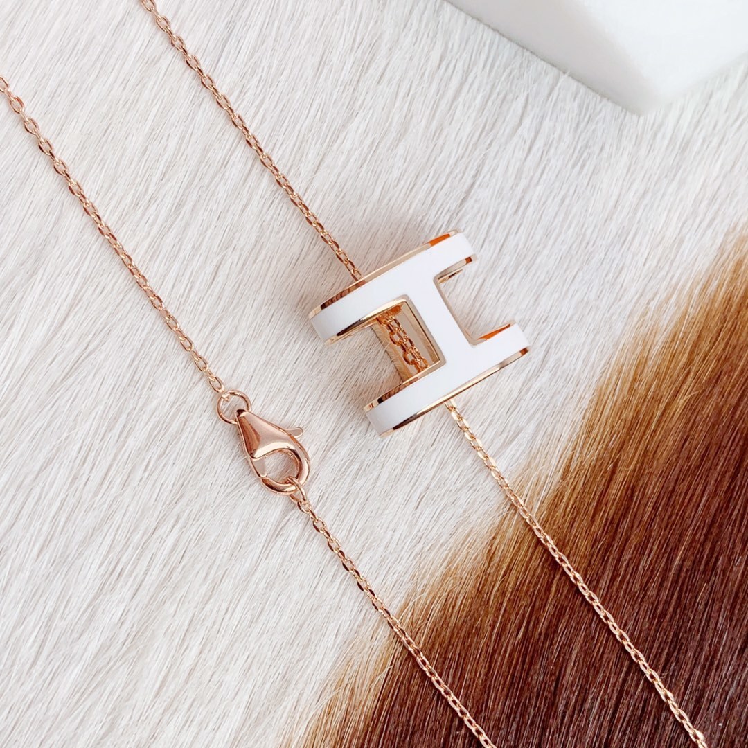 - Introducing the Hermès White Enamel H Rose Gold Necklace
