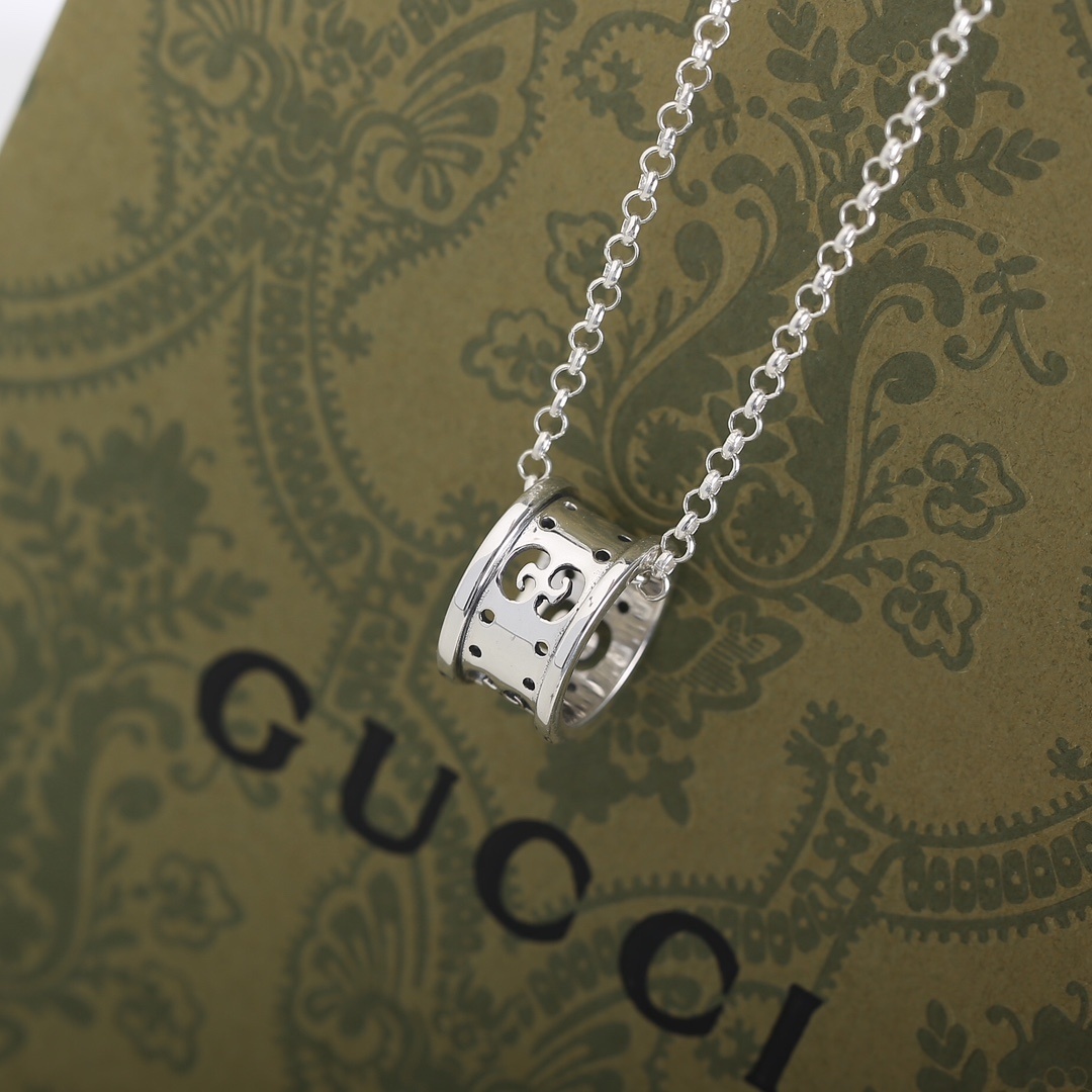 The use of sterling silver ensures that the necklace maintains its luster and resists tarnishing, even with regular wear. The interlocking G pendant is meticulously crafted, showcasing Gucci's attention to detail and commitment to quality. The adjustable chain allows you to wear the necklace at different lengths, making it suitable for various necklines and outfits. The secure clasp ensures that the necklace stays securely fastened, providing confidence and peace of mind.