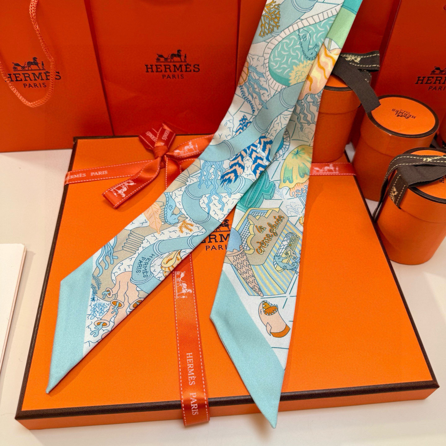 - Introducing the Hermès 'La Promenade' Blue Silk Twilly Scarf