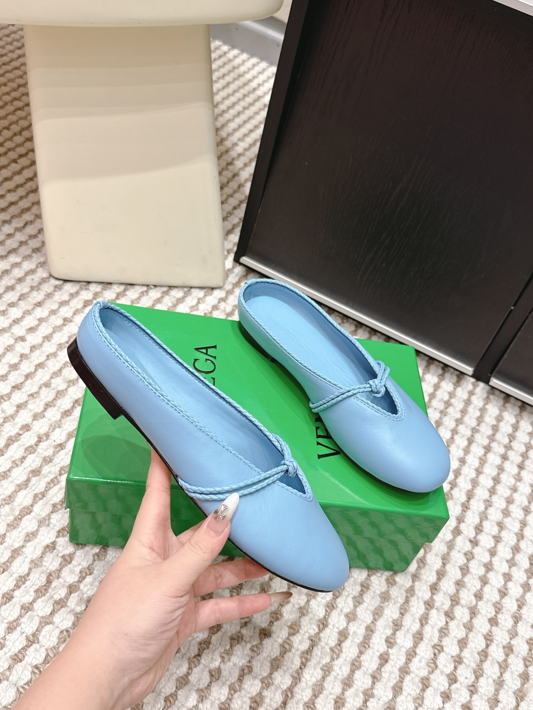 - leather Bottega Veneta Sky Blue Flats Overview